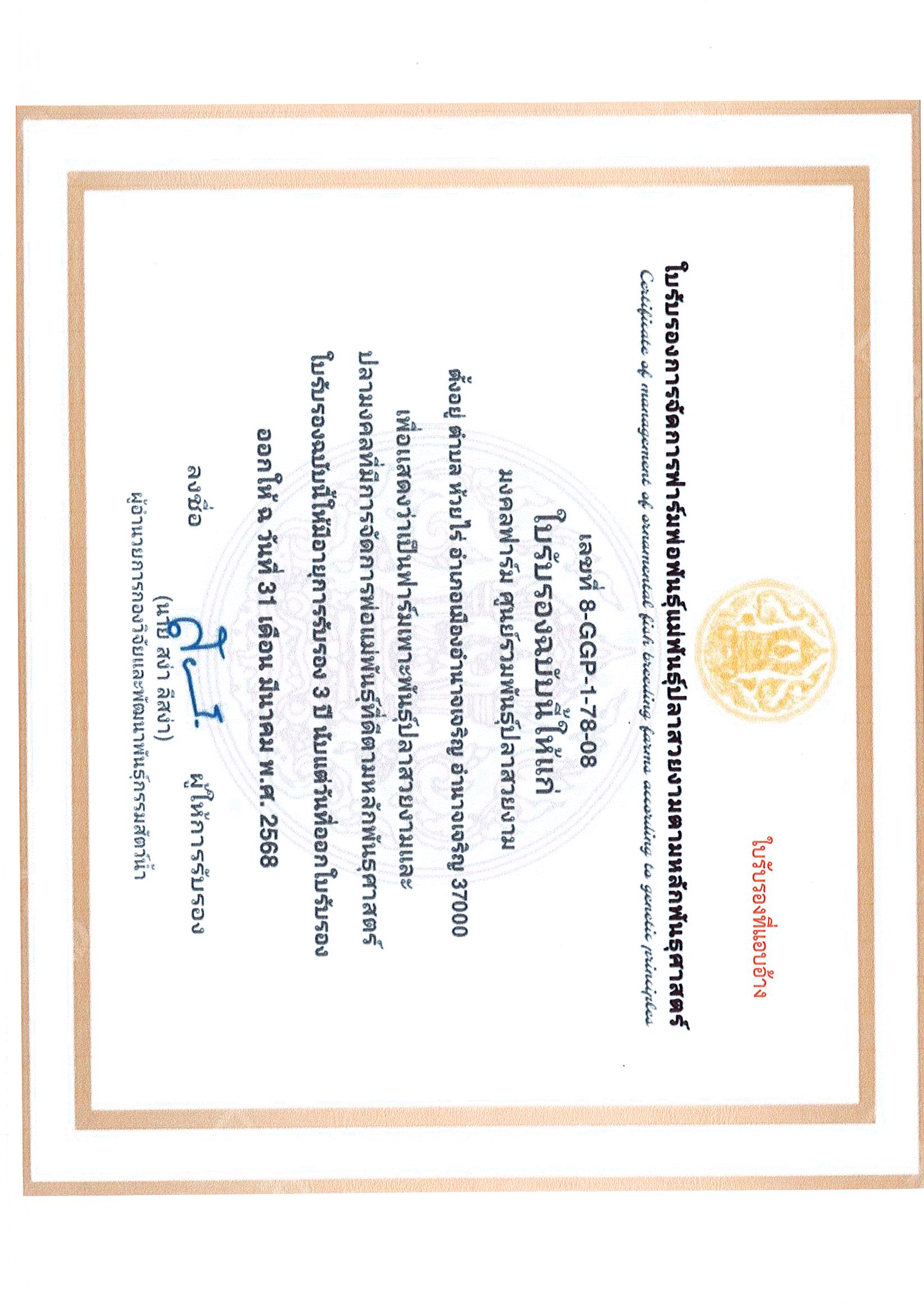 ประชาสัมพันธ์แจ้งเตือนการแอบอ้างใบรับรองมาตรฐานการจัดการฟาร์มพ่อแม่พันธุ์สัตว์น้ำที่ดีตามหลักพันธุศาสตร์