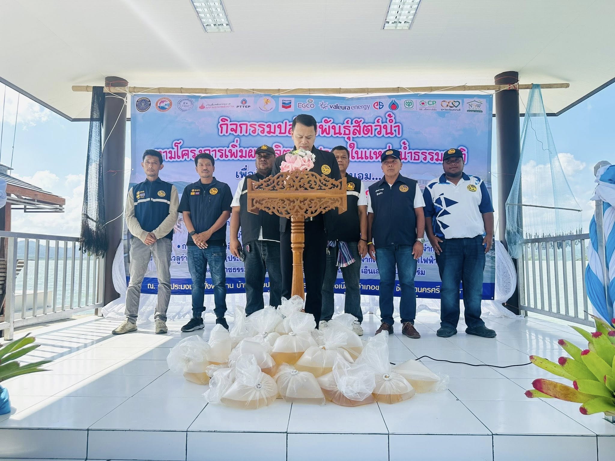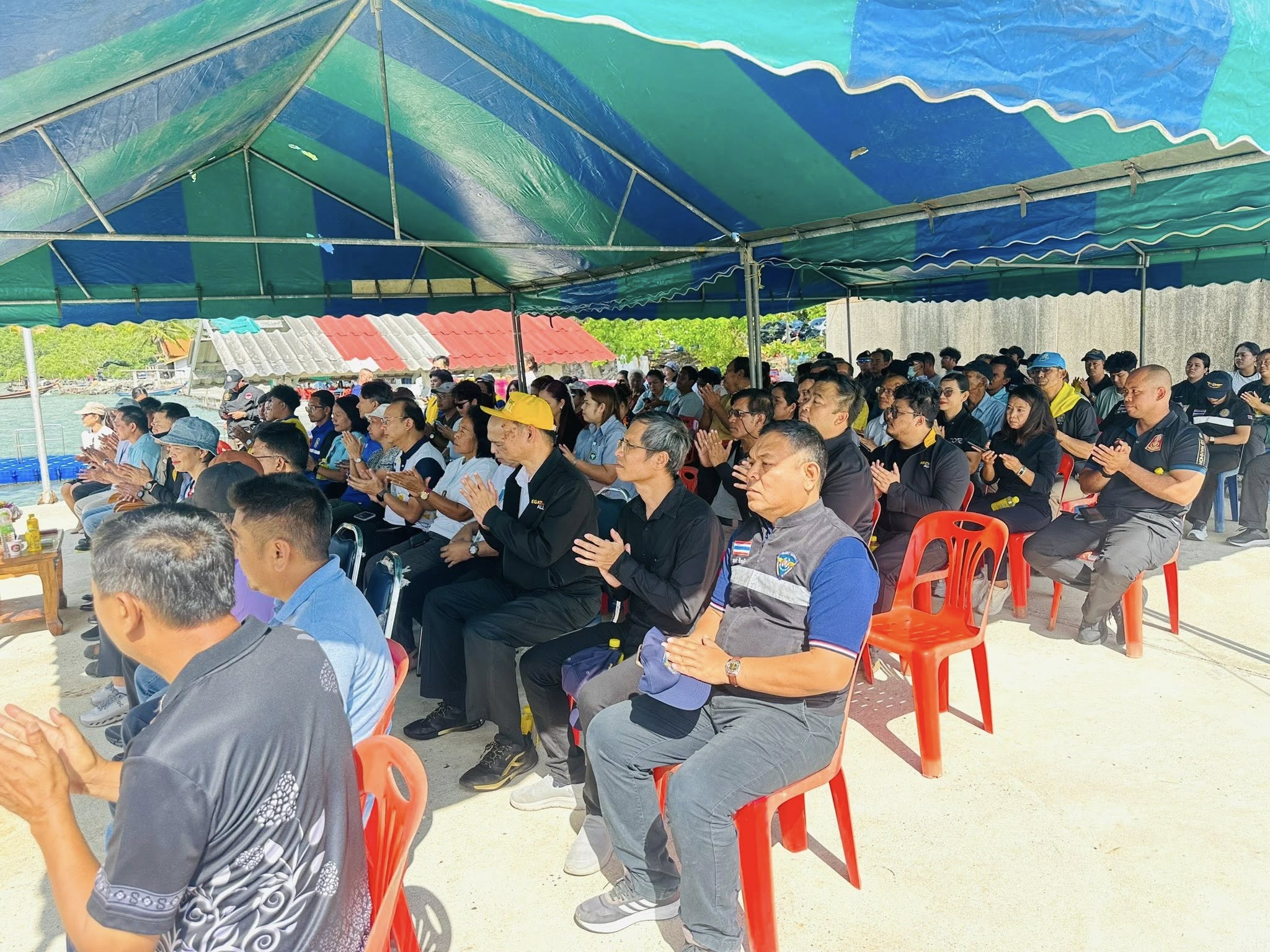 วันที่ 18 มีนาคม 2569 นายมาโนช อัจนากิตติ หัวหน้าศูนย์ควบคุมการแจ้งเรือเข้าออกขนอม พร้อมด้วยเจ้าหน้าที่ศูนย์ และเจ้าหน้าที่ชุดสหวิชาชีพ เข้าร่วมกิจกรรมปล่อยพันธุ์สัตว์น้ำ “ลูกพันธุ์กุ้งแชบ๊วย จำนวน 20 ล้านตัว” ตามโครงการเพิ่มผลผลิตการประมงในแหล่งน้ำธรรมชาติ เพื่อพี่น้องชาวประมง…ขนอม… ณ กลุ่มประมงชายฝั่งพื้นบ้าน บ้านแหลมประทับ หมู่ที่ 5 ตำบลท้องเนียน อำเภอขนอม จังหวัดนครศรีธรรมราช โดยมีนายนพดล ขาวมะลิ นายอำเภอขนอม เป็นประธานในพิธี