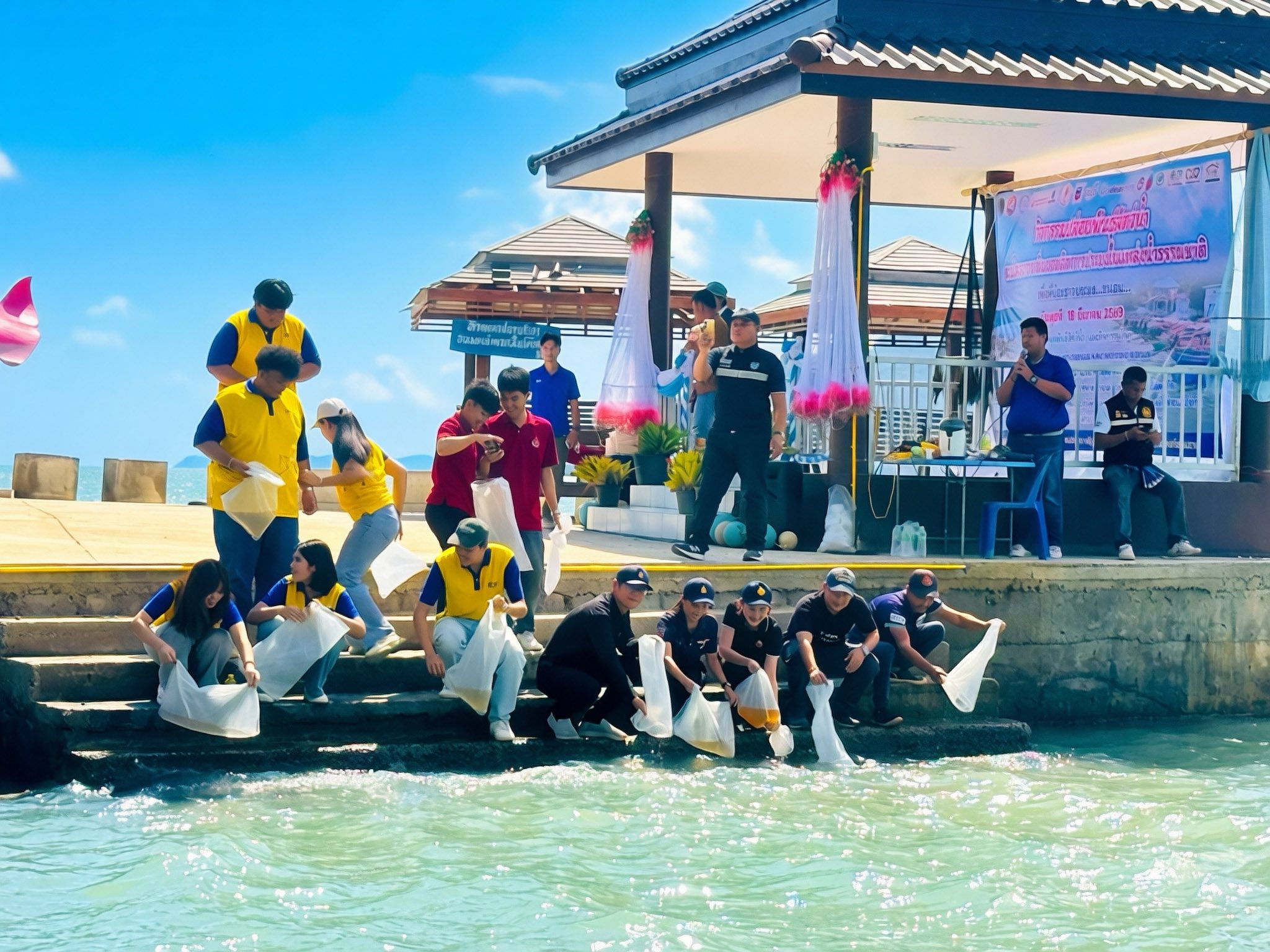 วันที่ 18 มี.ค. 69 นายมาโนช อัจนากิตติ หัวหน้าศูนย์ควบคุมการแจ้งเรือเข้าออกขนอม พร้อมด้วยเจ้าหน้าที่ศูนย์ และเจ้าหน้าที่ชุดสหวิชาชีพ เข้าร่วมกิจกรรมปล่อยพันธุ์สัตว์น้ำ