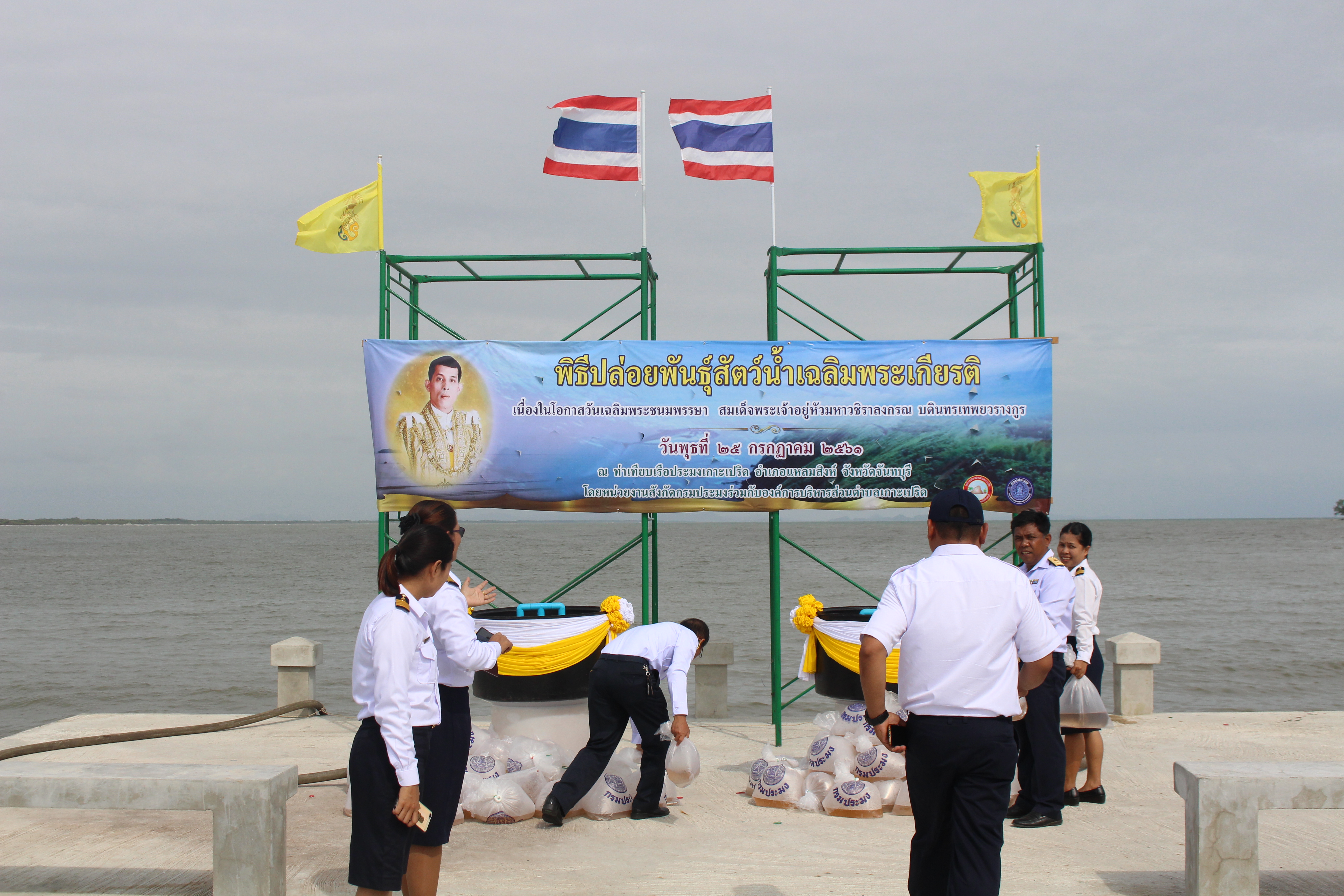 พิธีปล่อยพันธุ์สัตว์น้ำเฉลิมพระเกียรติ เนื่องในโอกาสวันเฉลิมพระชนมพรรษา สมเด็จพระเจ้าอยู่หัวมหาวชิราลงกรณ บดินทรเทพยวรางกูร วันที่ 25 กรกฏาคม 2561 ณ ท่าเทียบเรือประมงเกาะเปริด อ.แหลมสิงห์ จ.จันทบุรี