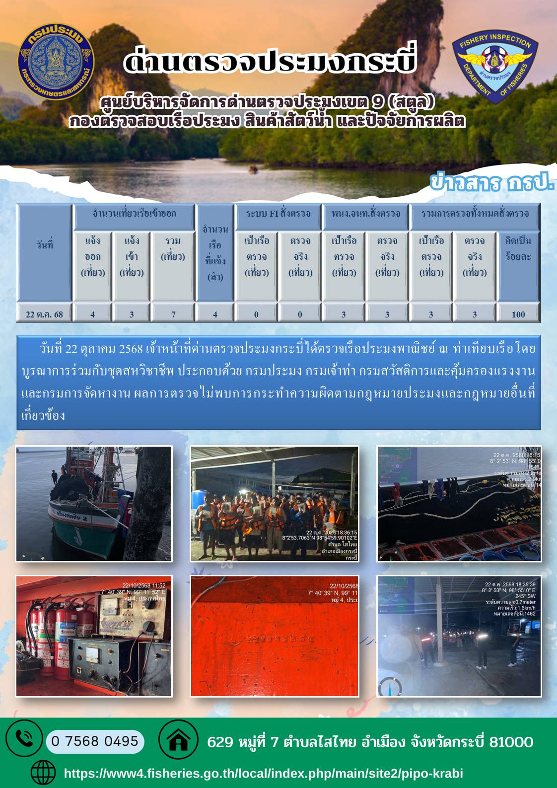ผลตรวจเรือวันที่ 22-25 ตุลาคม 2568