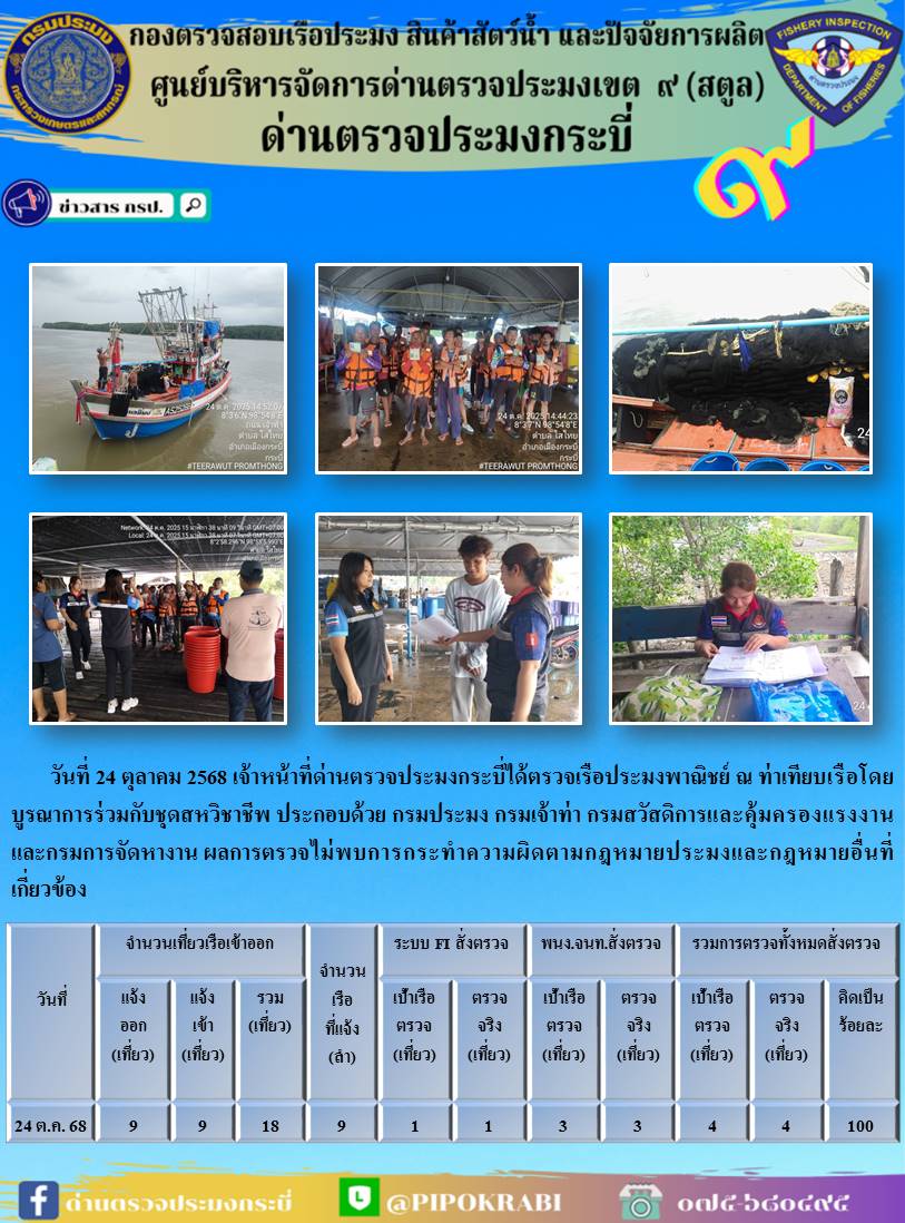 ผลตรวจเรือวันที่ 22-25 ตุลาคม 2568ผลตรวจเรือวันที่ 22-25 ตุลาคม 2568