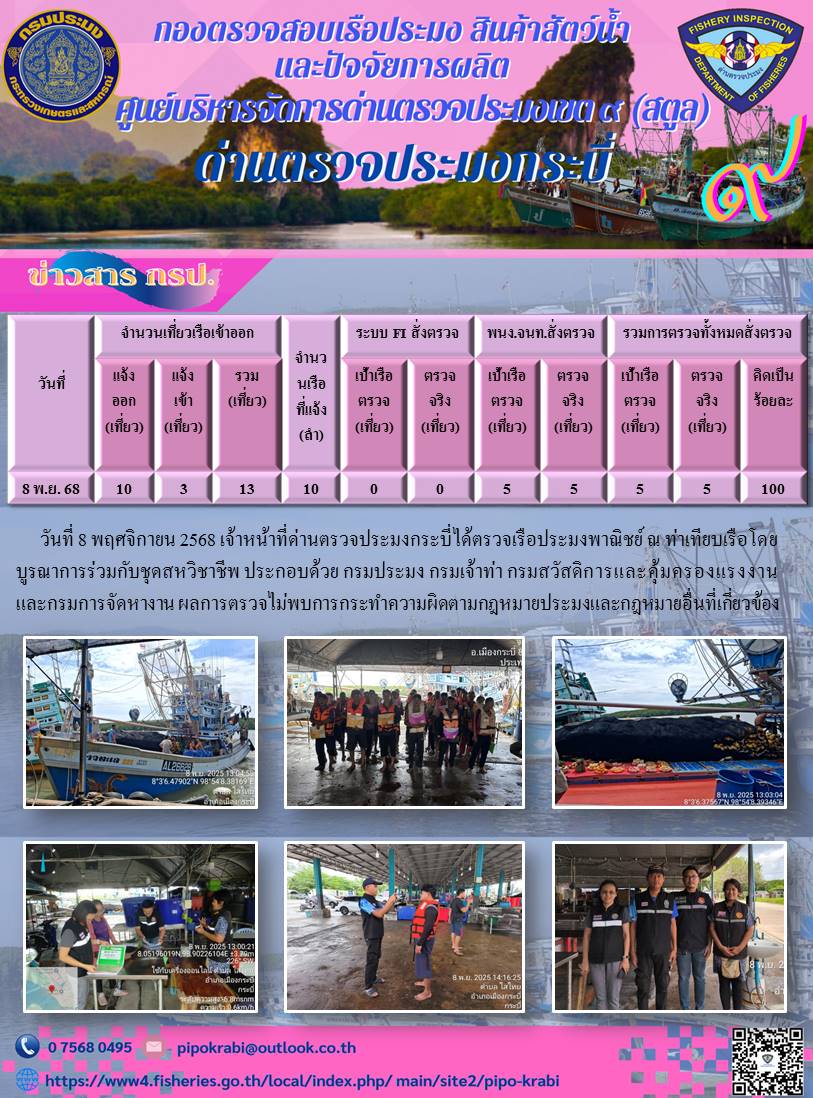 ผลตรวจเรือวันที่ 8-10 พ.ย 2568