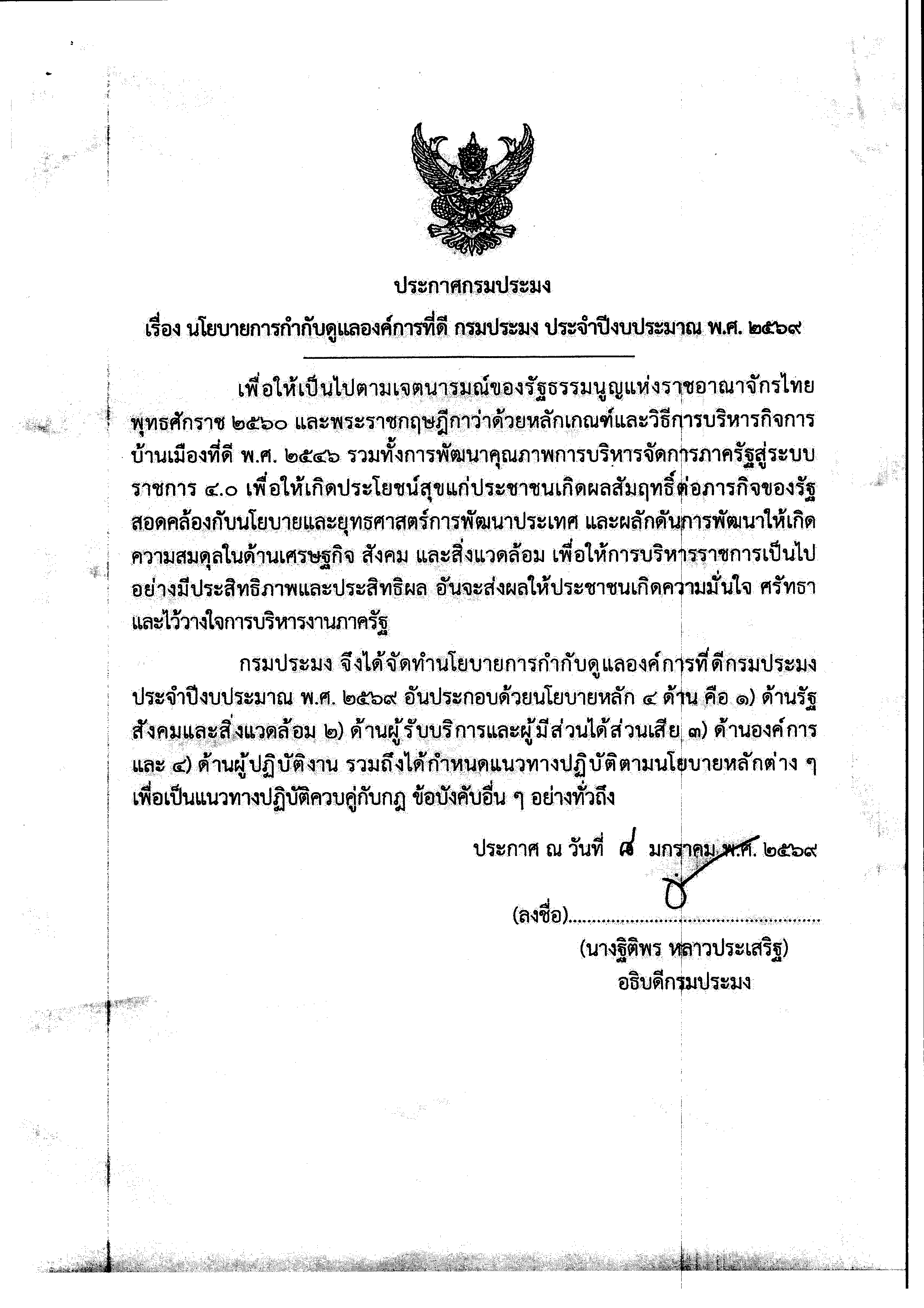 NEW นโยบายการกำกับดูแลองค์การที่ดี กรมประมง ประจำปีงบประมาณ พ.ศ. 2569..คลิก