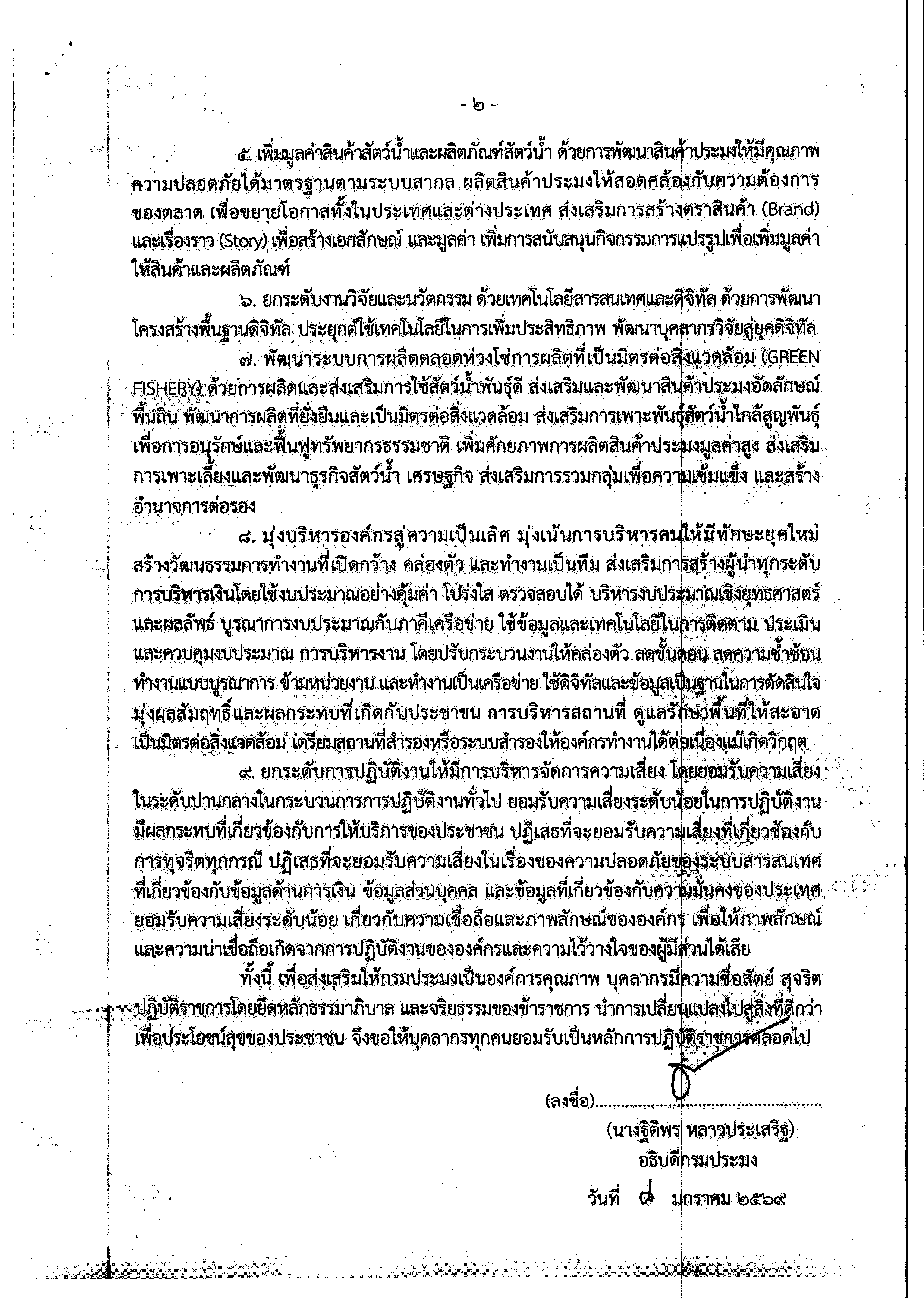 นโยบายการกำกับดูแลองค์การที่ดี กรมประมง ประจำปีงบประมาณ พ.ศ. 2569