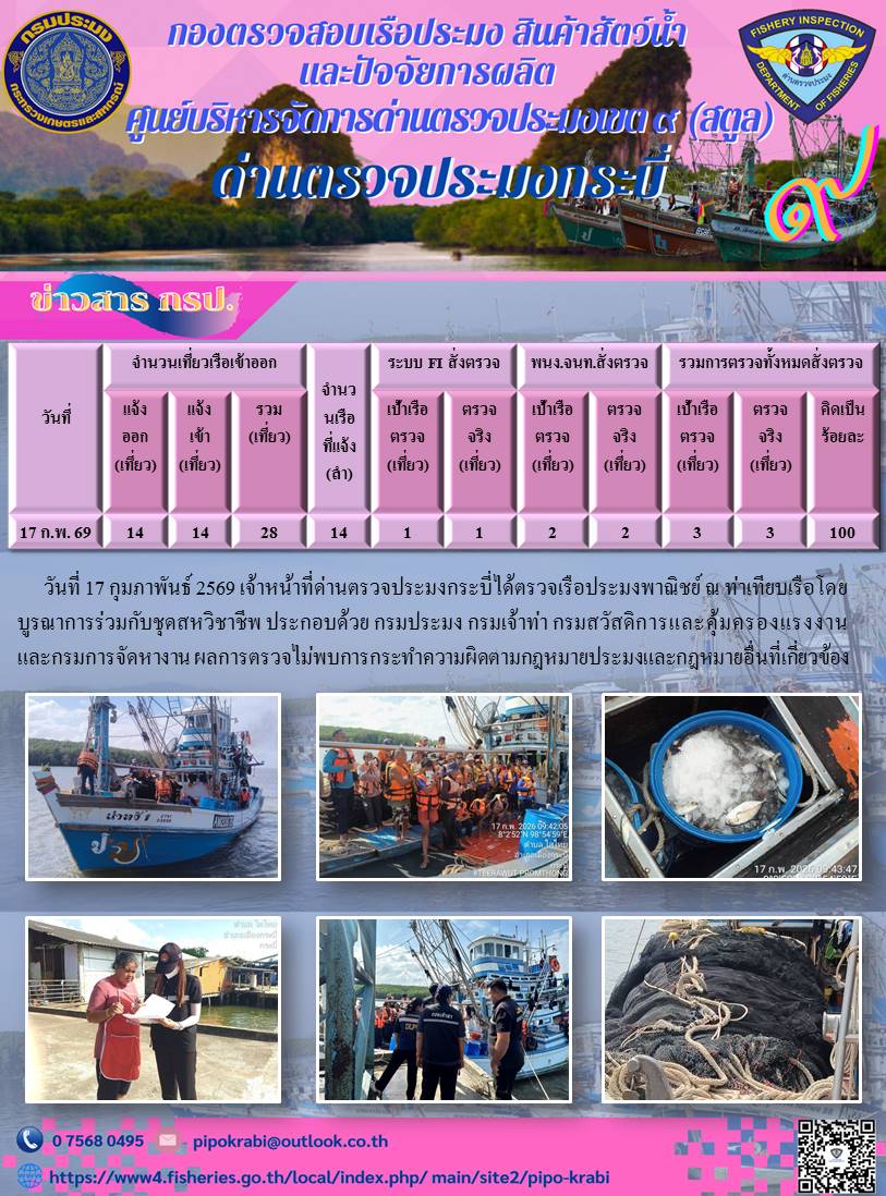 ผลตรวจเรือ 17- 21 กุมภาพันะ์ 2569