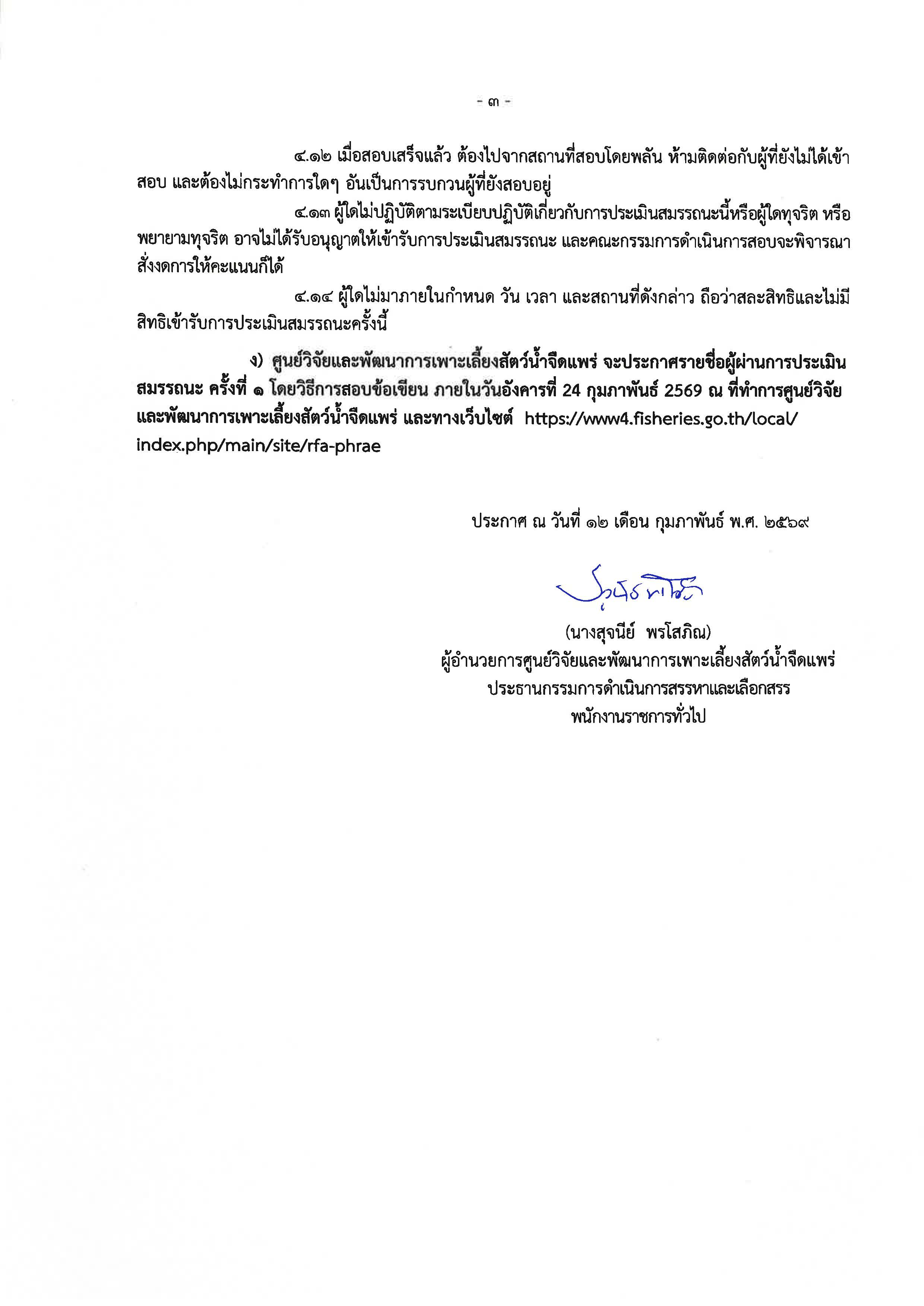 ประกาศ ศูนย์วิจัยและพัฒนาการเพาะเลี้ยงสัตว์น้ำจืดแพร่