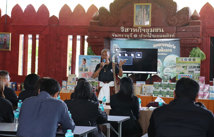 วันพุธที่ 12 พฤศจิกายน 2568 ศูนย์ศึกษาการพัฒนาอ่าวคุ้งกระเบนอันเนื่องมาจากพระราชดำริ นำคณะสื่อมวลชนลงพื้นที่ ศูนย์เรียนรู้ตามแนวพระราชดำริด้านการเพาะเลี้ยงและแปรรูปสาหร่ายทะเลแบบครบวงจร ในการนี้ คุณสุภิดา ลิ้นทอง ได้บรรยายถึงจุดเริ่มต้นของการดำเนินงานของกลุ่มว่า เกิดจากการที่ศูนย์ศึกษาการพัฒนาอ่าวคุ้งกระเบนฯ ได้ถ่ายทอดองค์ความรู้เรื่อง “การถอดก้างและการแปรรูปปลานวลจันทร์ทะเล” ให้แก่ชุมชน ซึ่งทำให้กลุ่มสามารถพัฒนาและต่อยอดแนวคิดสู่นวัตกรรม “Zero Waste” โดยนำทุกส่วนของปลานวลจันทร์ทะเลมาใช้ให้เกิดประโยชน์สูงสุด