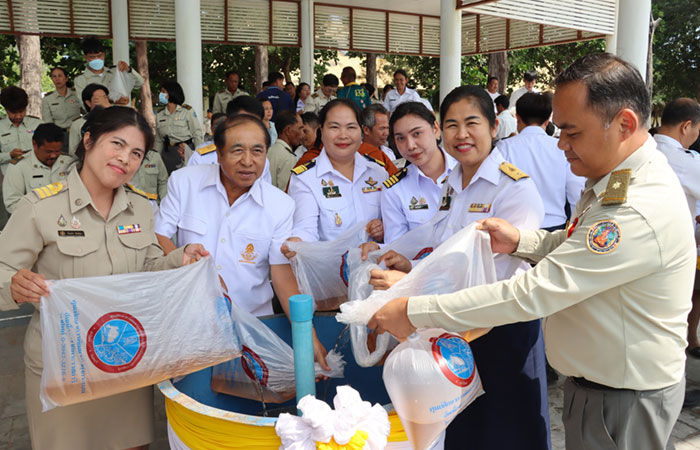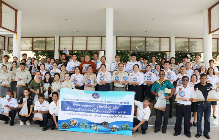 พร้อมฟังธรรมเรื่อง “ความซื่อสัตย์สุจริตนำมาซึ่งความสุข” โดยพระครูธรรมธร เตชินท์ ชิตเตโช (เจ้าอาวาสวัดแหลมเสด็จ) และร่วมปล่อยพันธุ์กุ้งแชบ๊วย จำนวน 1,000,000 ตัว เพื่อเพิ่มพูนทรัพยากรสัตว์น้ำและฟื้นฟูระบบนิเวศชายฝั่ง ณ บริเวณชายหาดแหลมเสด็จ