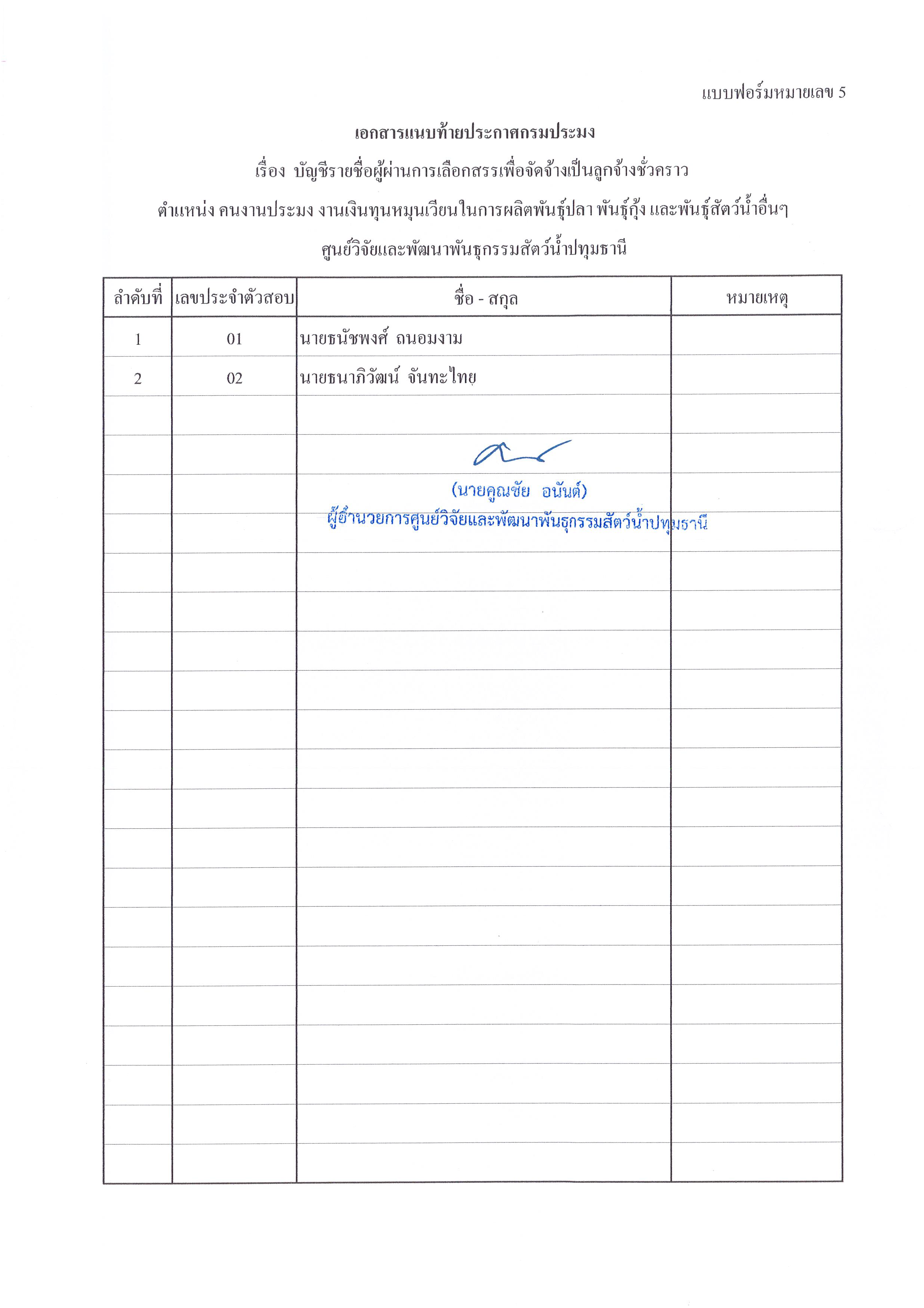 (2.1.16) ประเมินศักยภาพในการทำงานและความเหมาะสมในการดำรงตำแหน่ง ของบุคลากรของศูนย์วิจัยและพัฒนาพันธุกรรมสัตว์น้ำปทุมธานี