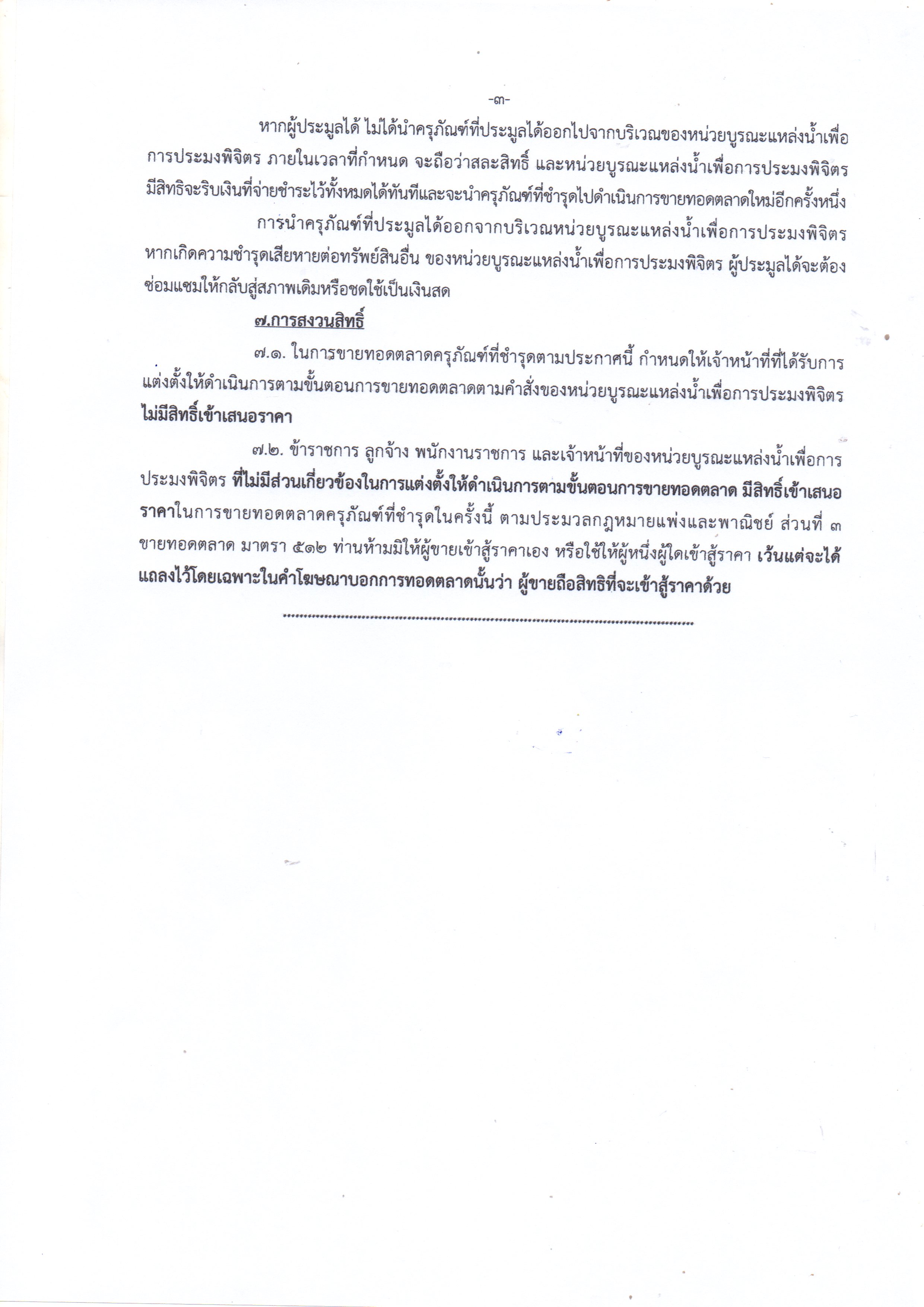 หน่วยบูรณะแหล่งน้ำเพื่อการประมงพิจิตร จะขายทอดตลาดครุภัณฑ์ที่ชำรุดใช้การไม่ได้ และหมดความจำเป็นใช้ในราชการ จำนวน 1 รายการ ในวันพฤหัสบดี ที่ 26 มีนาคม 2569 เวลา 10.30 น.  ณ หน่วยบูรณะแหล่งน้ำเพื่อการประมงพิจิตร ถนนบึงสีไฟ ตำบลในเมือง อำเภอเมืองพิจิตร จังหวัดพิจิตร ผู้สนใจสามารถติดต่อสอบถามรายละเอียดเพิ่มเติมได้ที่โทรศัพท์หมายเลข 0 5661 3467 และขอดูครุภัณฑ์ที่จะขายได้ตั้งแต่บัดนี้ จนถึงวันที่ 25 มีนาคม 2569 ในวันและเวลาราชการ