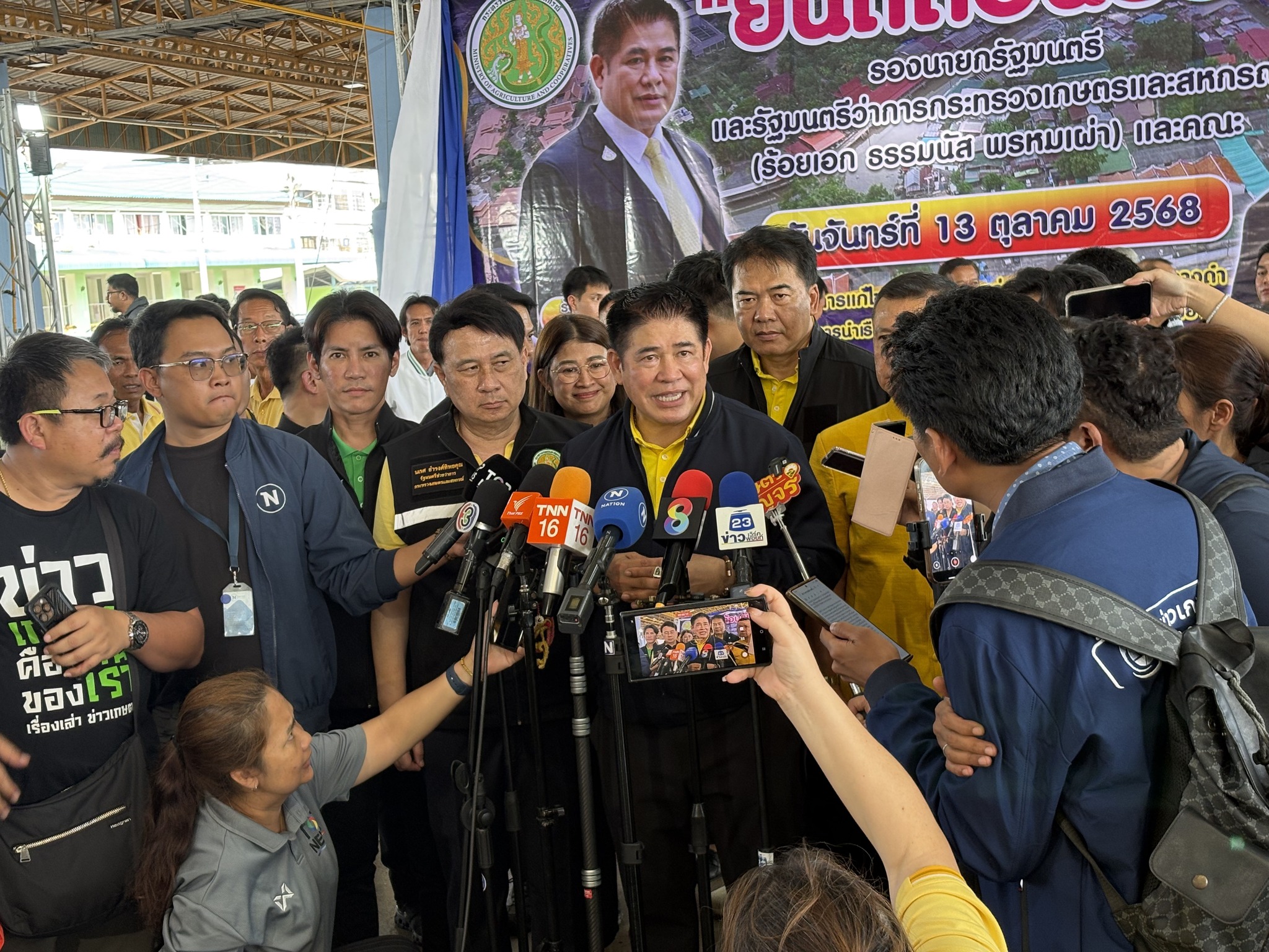 วันจันทร์ที่ 13 ตุลาคม 2568 เวลา 13.00 น. ร้อยเอก ธรรมนัส พรหมเผ่า รองนายกรัฐมนตรีและรัฐมนตรีว่าการกระทรวงเกษตรและสหกรณ์ พร้อมด้วย นายอามินทร์ มะยูโซ๊ะ รัฐมนตรีช่วยว่าการกระทรวงเกษตรและสหกรณ์ นายนเรศ ธำรงค์ทิพยคุณ รัฐมนตรีช่วยว่าการกระทรวงเกษตรและสหกรณ์ ลงพื้นที่ตรวจเยี่ยมโครงการแก้ไขปัญหาการแพร่ระบาดของปลาหมอคางดำ โดยมี นางฐิติพร หลาวประเสริฐ รองอธิบดีกรมประมง รักษาราชการแทนอธิบดีกรมประมง นายมานพ หนูสอน นายสุวัฐน์ วงศ์สุวัฒน์ นายประเทศ ซอรักษ์ รองอธิบดีกรมประมง และคณะผู้บริหารในสังกัดกระทรวงเกษตรและสหกรณ์ ให้การต้อนรับและรายงานผลการดำเนินงานโครงการแก้ไขปัญหาการแพร่ระบาดของปลาหมอคางดำ โครงการนำเรือประมงออกนอกระบบเพื่อการจัดการทรัพยากรประมงอย่างยั่งยืน โอกาสนี้ รองนายกรัฐมนตรี ได้เป็นประธานในการมอบป้ายโครงการนำเรือประมงออกนอกระบบเพื่อการจัดการทรัพยากรประมงอย่างยั่งยืนให้กับผู้ร่วมโครงการฯ จำนวน 10 จังหวัด รวมทั้งมอบป้ายเงินอุดหนุนโครงการฟื้นฟูและพัฒนาเกษตรกร จากสำนักงานกองทุนฟื้นฟูและพัฒนาเกษตรกร จำนวน 4 องค์กร รับฟังปัญหาของชาวประมงและเกษตรกรและร่วมตอบข้อซักถามความเดือดร้อนในพื้นที่ พร้อมทั้งเยี่ยมชมนิทรรศการการดำเนินงานแก้ไขปัญหาปลาหมอคางดำจากกรมประมง และหน่วยงานที่เกี่ยวข้อง ณ สหกรณ์ประมงแม่กลอง จำกัด อำเภอเมืองสมุทรสงคราม จังหวัดสมุทรสงคราม