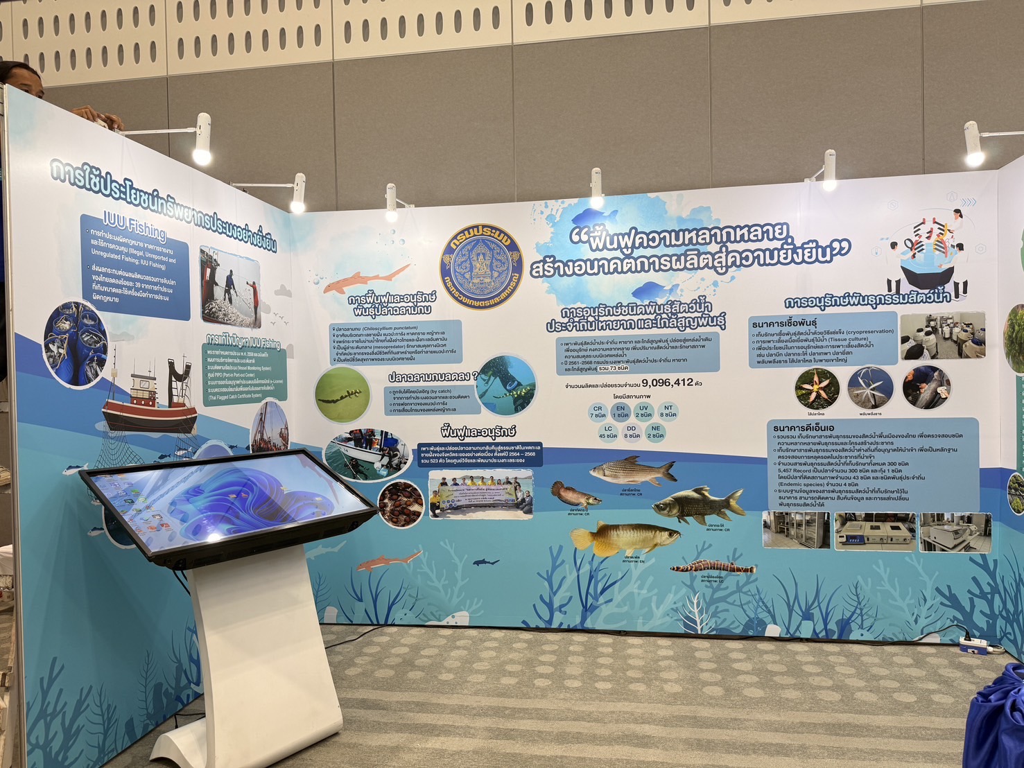 ทั้งนี้ กรมประมง ได้ร่วมจัดนิทรรศการ “ฟื้นฟูความหลากหลาย สร้างอนาคตการผลิตสัตว์น้ำสู่ความยั่งยืน” (Restoring Biodiversity and Forge Sustainable Future in Fisheries Production) ซึ่งประกอบด้วย
