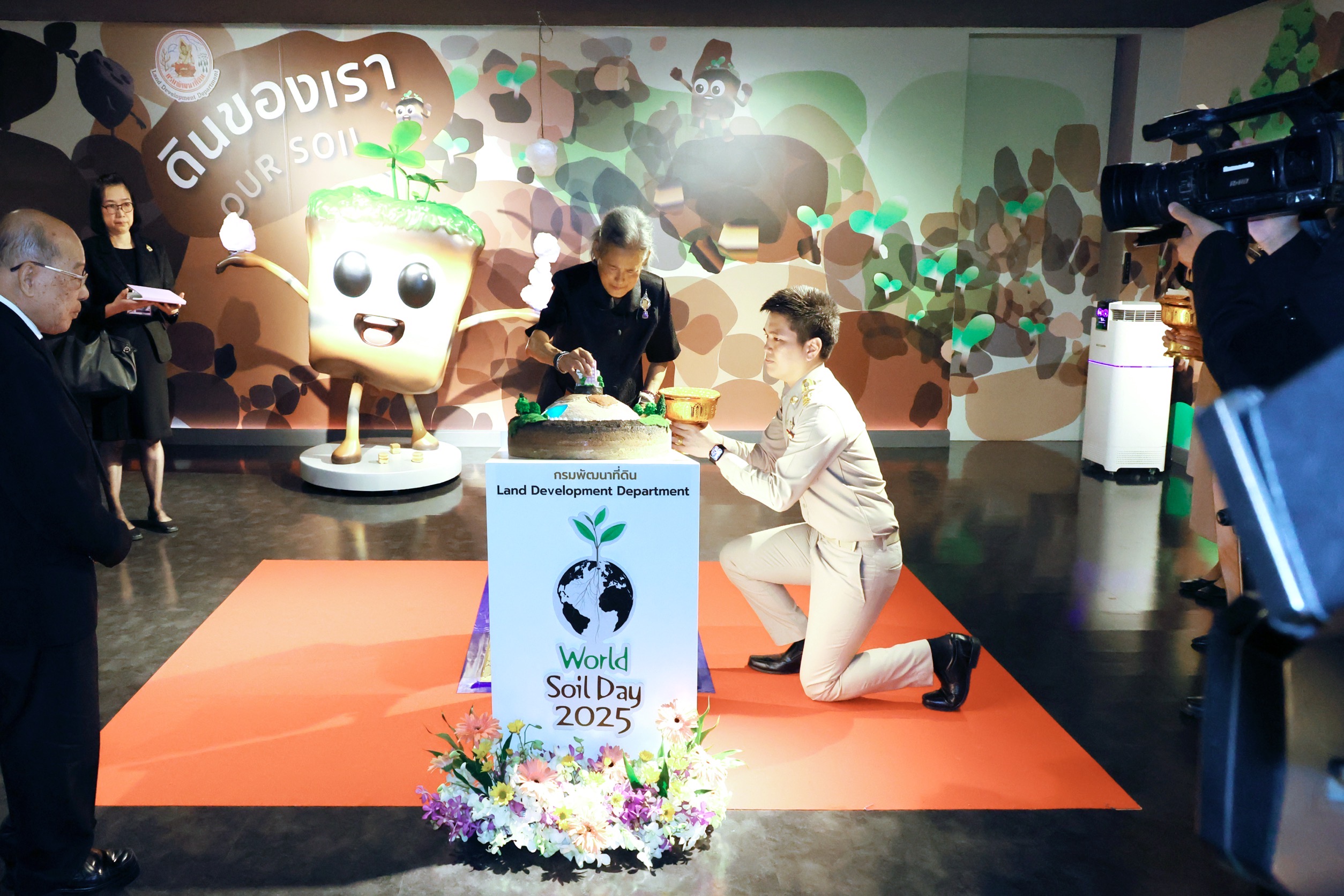 วันศุกร์ที่ 5 ธันวาคม 2568 เวลา 09.00 น. สมเด็จพระกนิษฐาธิราชเจ้า กรมสมเด็จพระเทพรัตนราชสุดา ฯ สยามบรมราชกุมารี เสด็จพระราชดำเนินทรงเปิดงานวันดินโลก ประจำปี 2568 ภายใต้หัวข้อ Healthy soils for healthy cities : ดินที่สมบูรณ์ สู่เมืองที่สมดุล เกื้อกูลชีวิต โดยมี นายนเรศ ธำรงค์ทิพยคุณ รัฐมนตรีช่วยว่าการกระทรวงเกษตรและสหกรณ์ นายวิณะโรจน์ ทรัพย์ส่งสุข ปลัดกระทรวงเกษตรและสหกรณ์ นางฐิติพร หลาวประเสริฐ อธิบดีกรมประมง นางพิชญา ชัยนาค ผู้อำนวยการกองวิจัยและพัฒนาเทคโนโลยีอุตสาหกรรมสัตว์น้ำ ผู้บริหาร เจ้าหน้าที่ในสังกัดกระทรวงเกษตรและสหกรณ์ และประชาชน เฝ้าฯ รับเสด็จ ณ กรมพัฒนาที่ดิน เขตจตุจักร กรุงเทพฯ