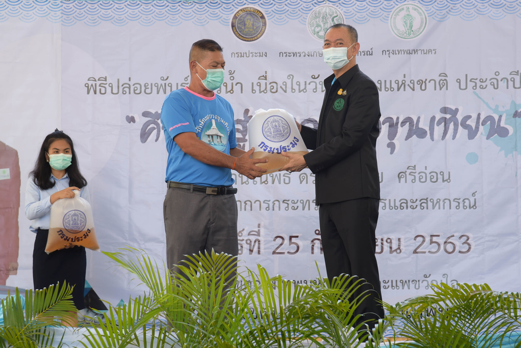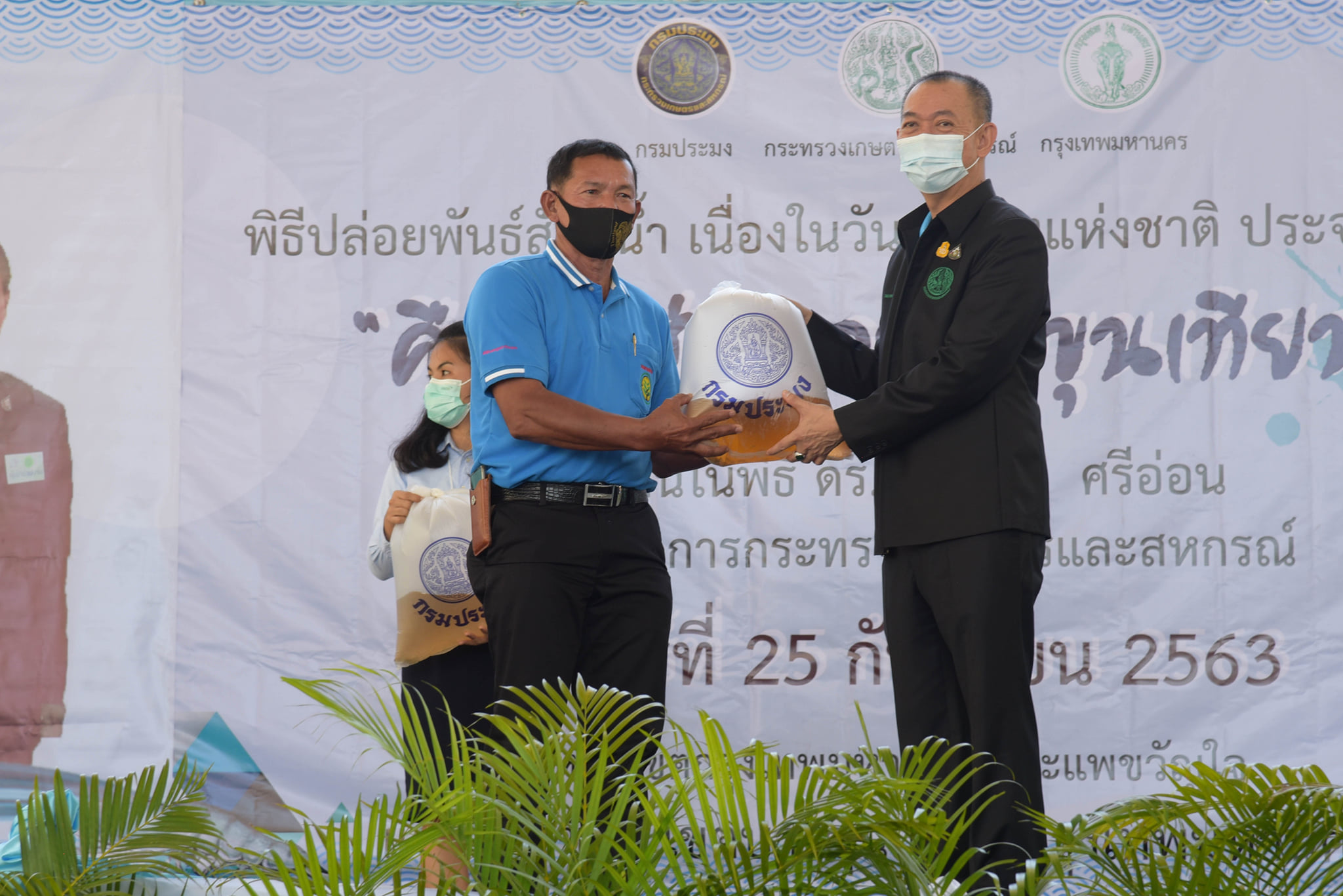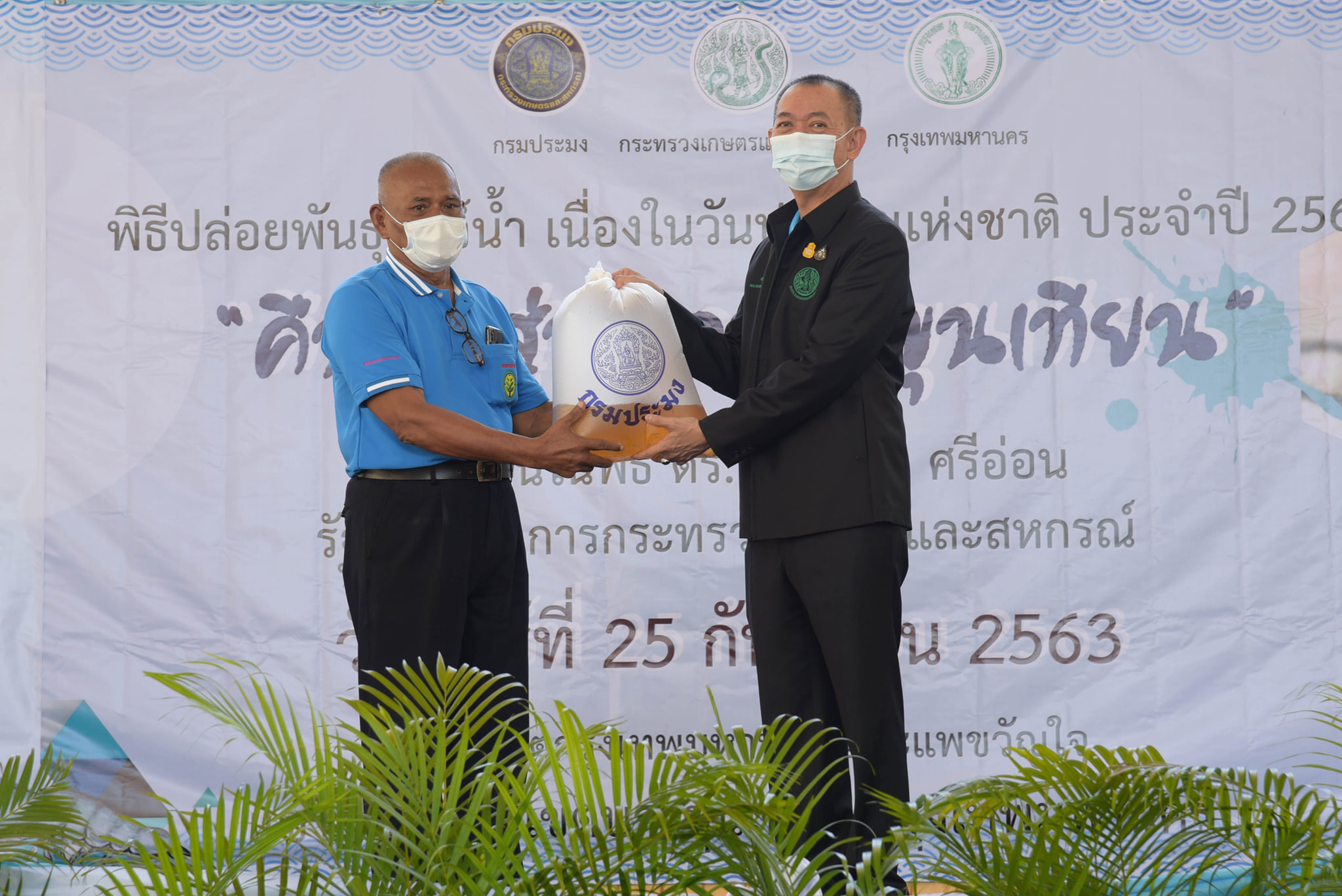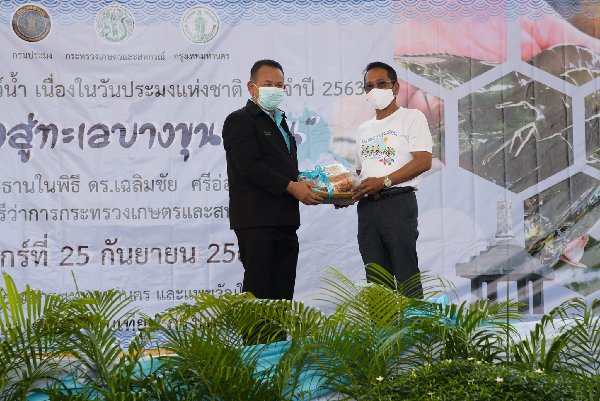 วันนี้ (25 กันยายน 2563) เวลา 10.00 น. กรมประมงจัดกิจกรรมวันประมงแห่งชาติด้านชายฝั่ง พื้นที่กรุงเทพมหานคร "คืนกุ้งสู่ทะเลบางขุนเทียน" โดยได้รับเกียรติจาก ดร.เฉลิมชัย ศรีอ่อน รัฐมนตรีว่าการกระทรวงเกษตรและสหกรณ์ เป็นประธานในพิธีเปิด ณ โรงเรียนคลองพิทยาลงกรณ์ เขตบางขุนเทียน กรุงเทพมหานคร โดยมี นายมีศักดิ์ ภักดีคง อธิบดีกรมประมง นายศักดิ์ชัย บุญมา รองผู้ว่าราชการกรุงเทพมหานคร คณะผู้บริหาร ข้าราชการ และเจ้าหน้าที่กรมประมง พร้อมด้วย เกษตรกร ชาวประมง นักเรียน นักศึกษา และประชาชนทั่วไป ให้การต้อนรับ พร้อมร่วมปล่อยพันธุ์สัตว์น้ำ ได้แก่ กุ้งกุลาดำ กุ้งแชบ๊วย รวมกว่า 20 ล้านตัว และปลากะพงขาวอีก 60,000 ตัว ลงสู่ทะเลบางขุนเทียน บริเวณแพขวัญใจและบริเวณหลักเขตกรุงเทพมหานคร