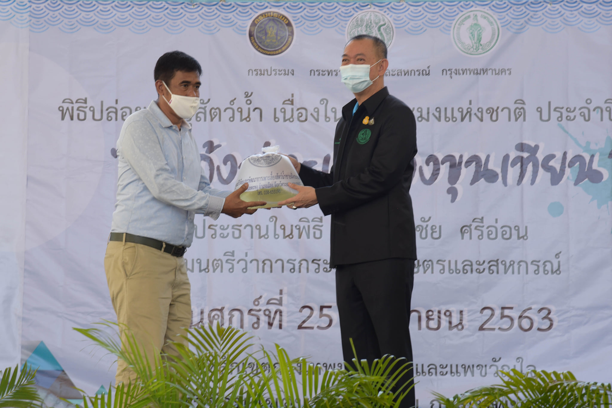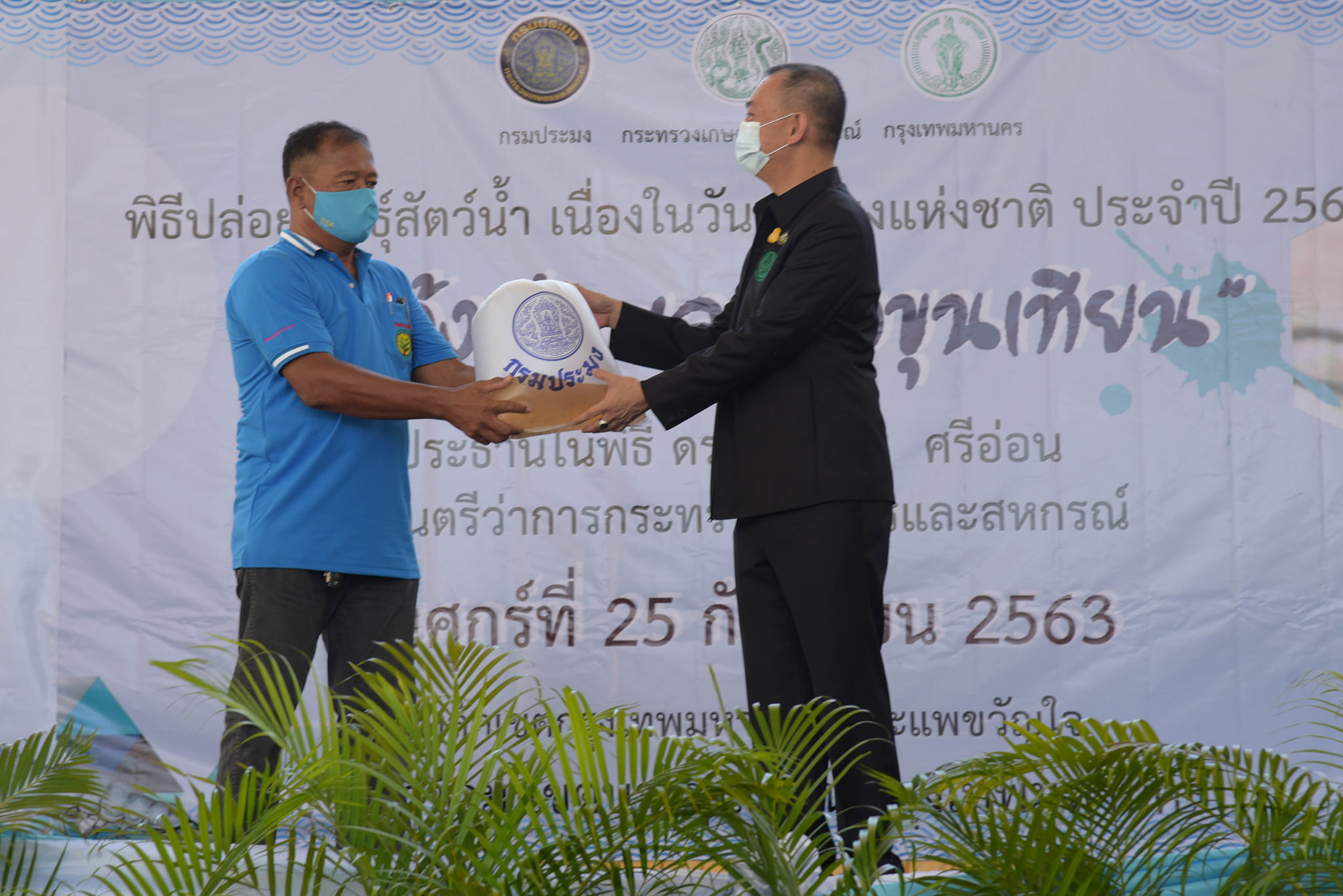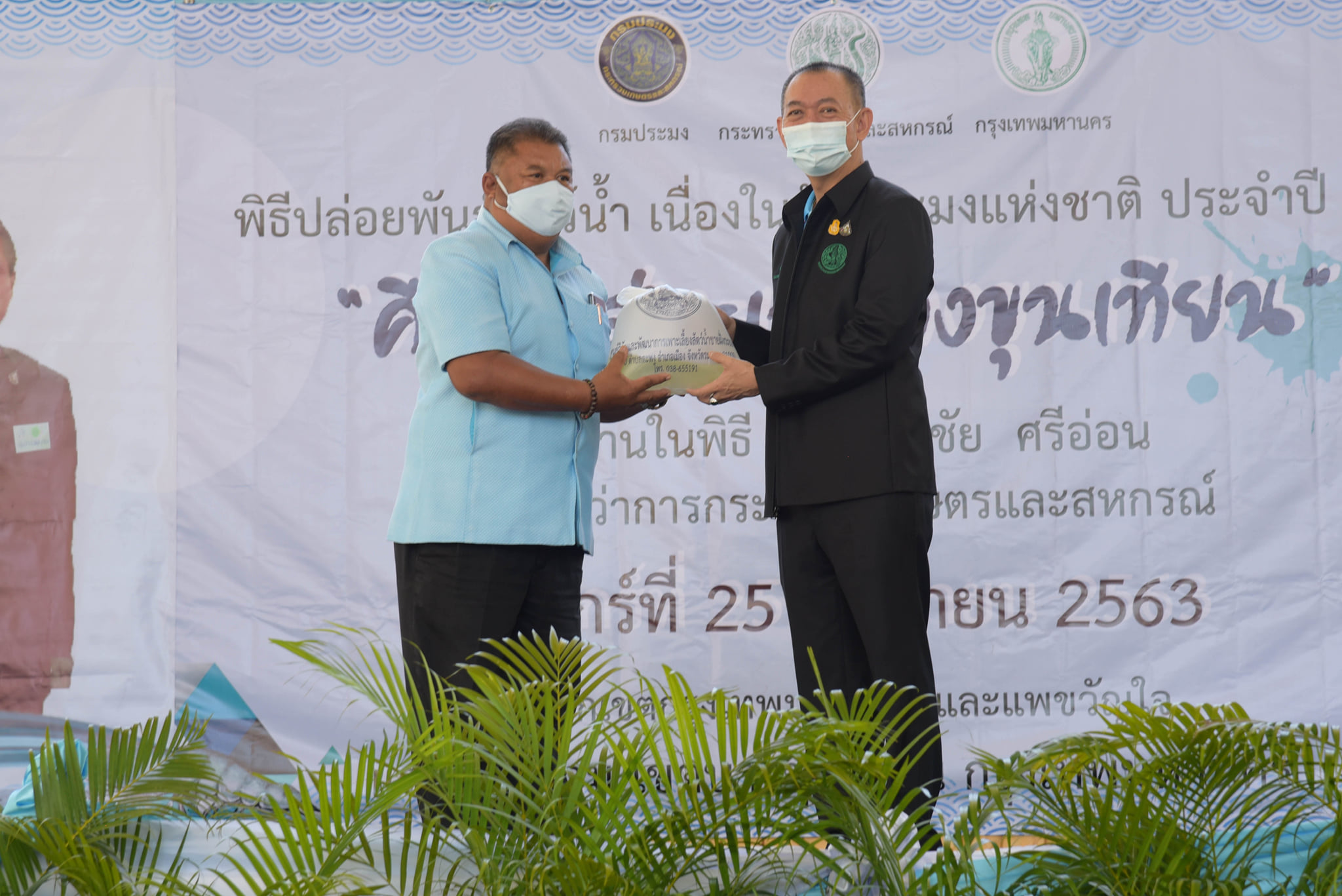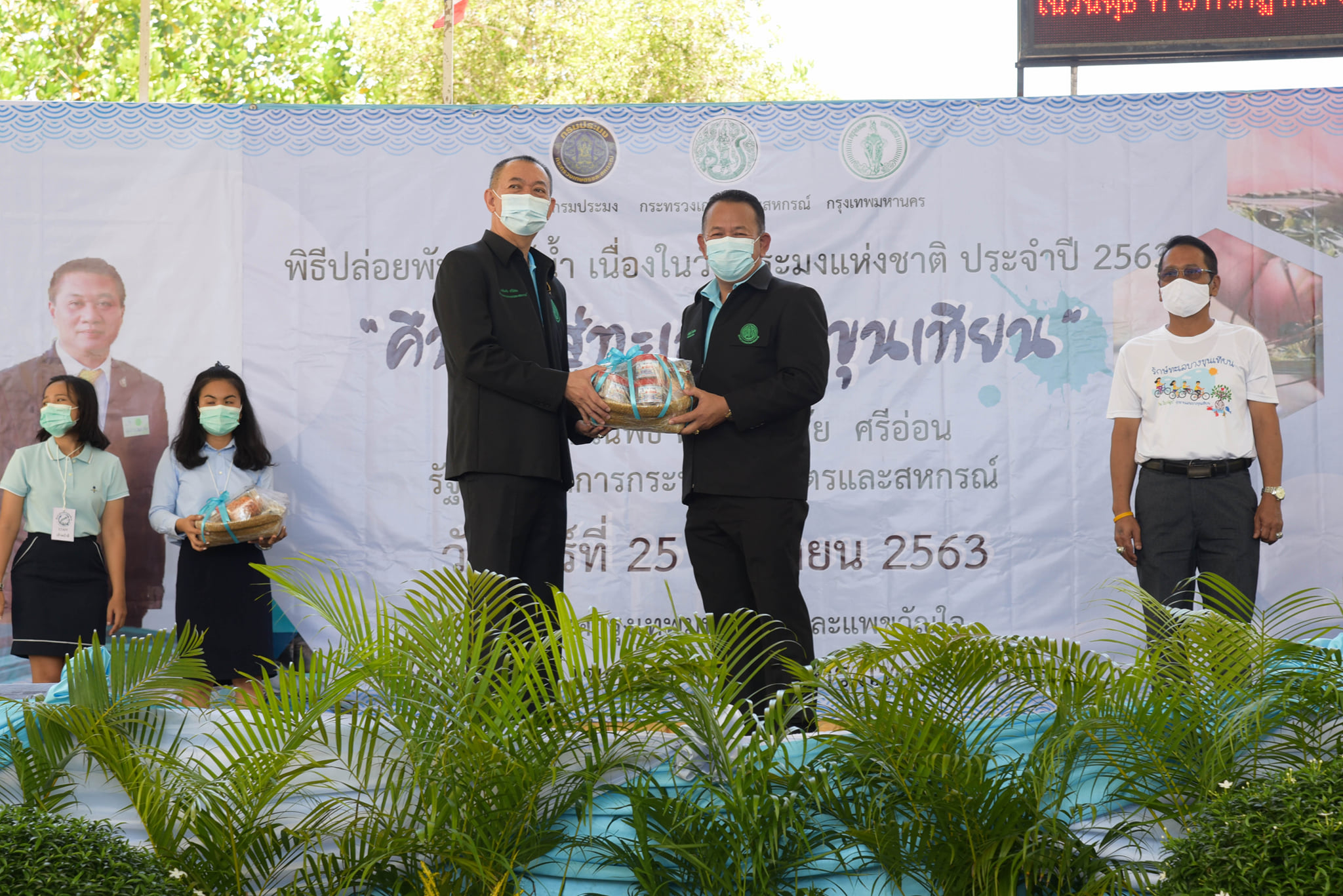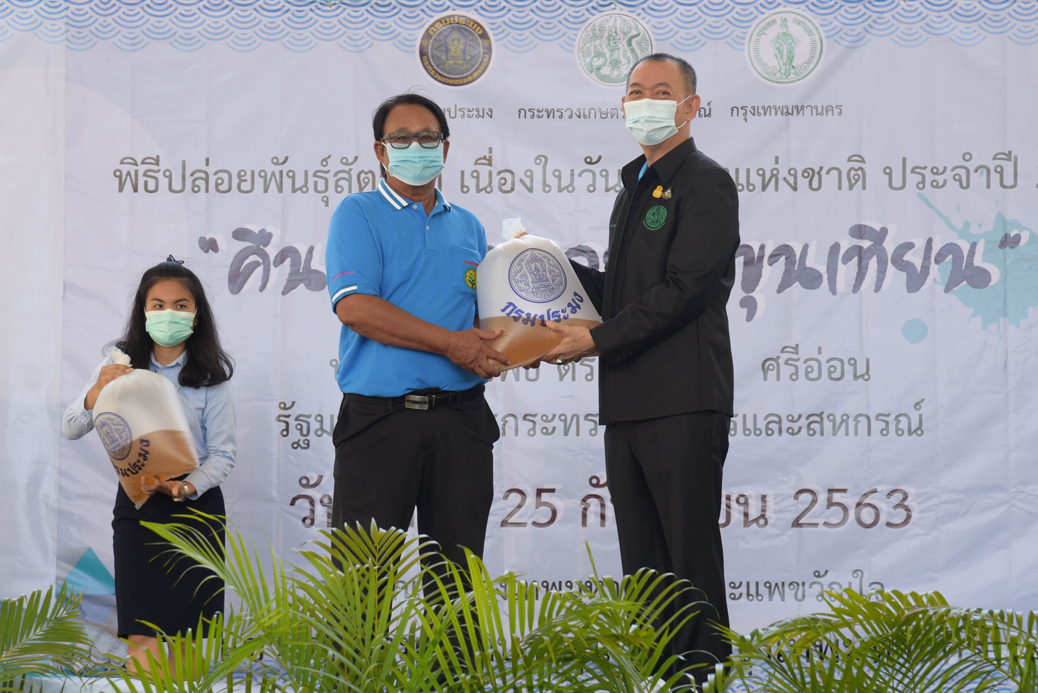 วันนี้ (25 กันยายน 2563) เวลา 10.00 น. กรมประมงจัดกิจกรรมวันประมงแห่งชาติด้านชายฝั่ง พื้นที่กรุงเทพมหานคร "คืนกุ้งสู่ทะเลบางขุนเทียน" โดยได้รับเกียรติจาก ดร.เฉลิมชัย ศรีอ่อน รัฐมนตรีว่าการกระทรวงเกษตรและสหกรณ์ เป็นประธานในพิธีเปิด ณ โรงเรียนคลองพิทยาลงกรณ์ เขตบางขุนเทียน กรุงเทพมหานคร โดยมี นายมีศักดิ์ ภักดีคง อธิบดีกรมประมง นายศักดิ์ชัย บุญมา รองผู้ว่าราชการกรุงเทพมหานคร คณะผู้บริหาร ข้าราชการ และเจ้าหน้าที่กรมประมง พร้อมด้วย เกษตรกร ชาวประมง นักเรียน นักศึกษา และประชาชนทั่วไป ให้การต้อนรับ พร้อมร่วมปล่อยพันธุ์สัตว์น้ำ ได้แก่ กุ้งกุลาดำ กุ้งแชบ๊วย รวมกว่า 20 ล้านตัว และปลากะพงขาวอีก 60,000 ตัว ลงสู่ทะเลบางขุนเทียน บริเวณแพขวัญใจและบริเวณหลักเขตกรุงเทพมหานคร