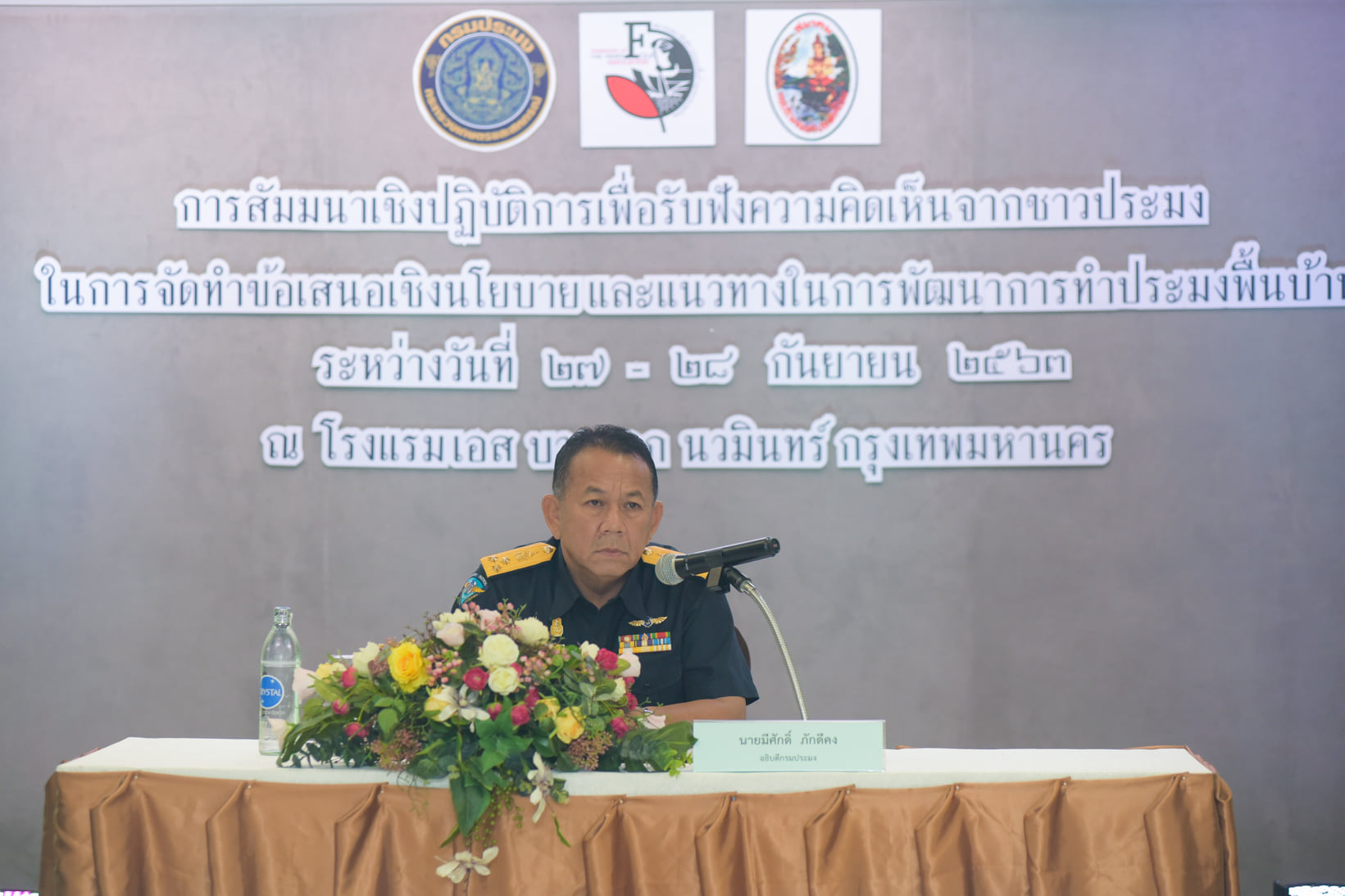 นายมีศักดิ์ ภักดีคง อธิบดีกรมประมง เป็นประธานในพิธีเปิดโครงการสัมมนาเชิงปฏิบัติการเพื่อรับฟังความคิดเห็นจากชาวประมง ในการจัดทำข้อเสนอเชิงนโยบายและแนวทางในการพัฒนาการทำประมงพื้นบ้าน