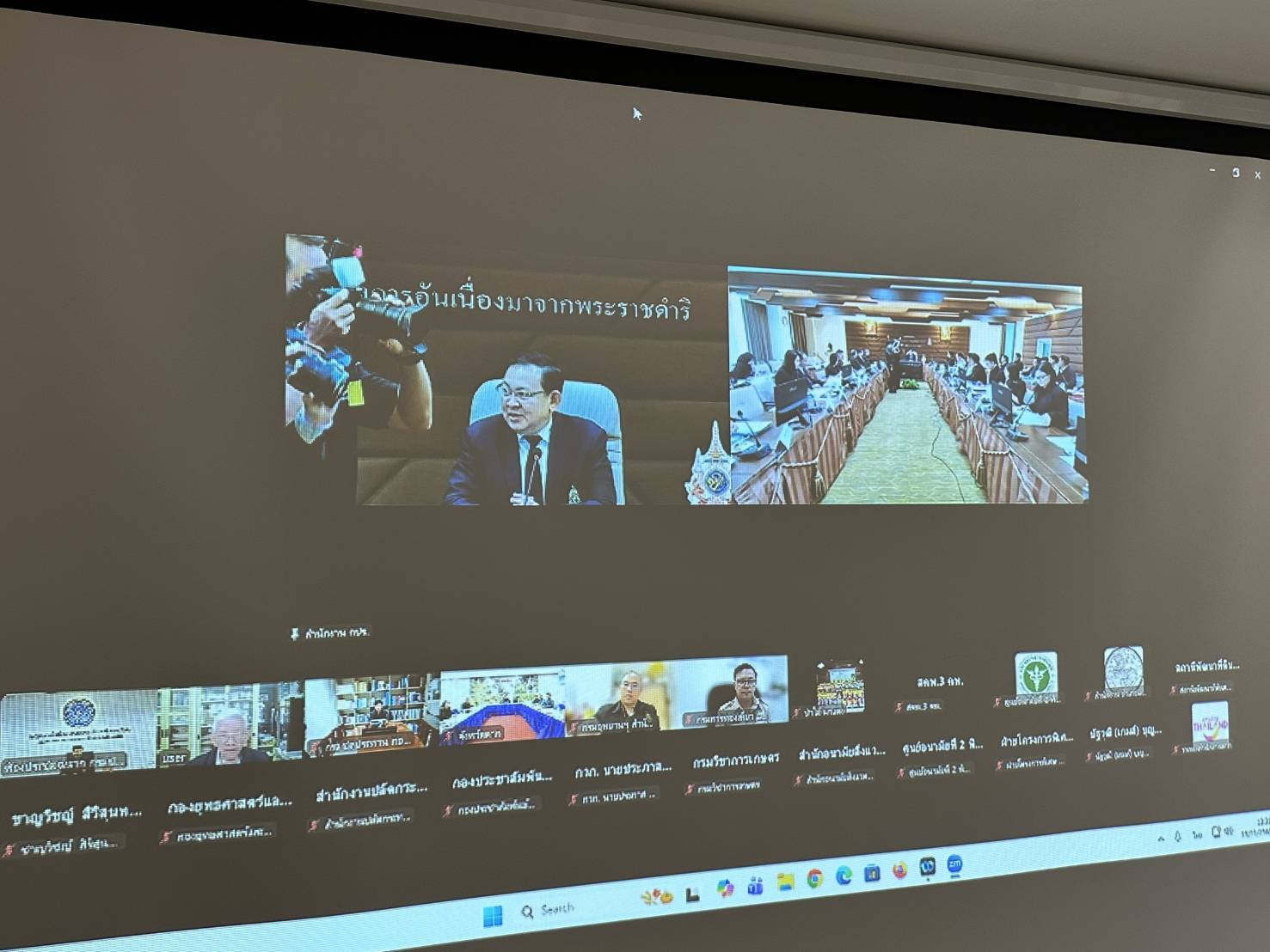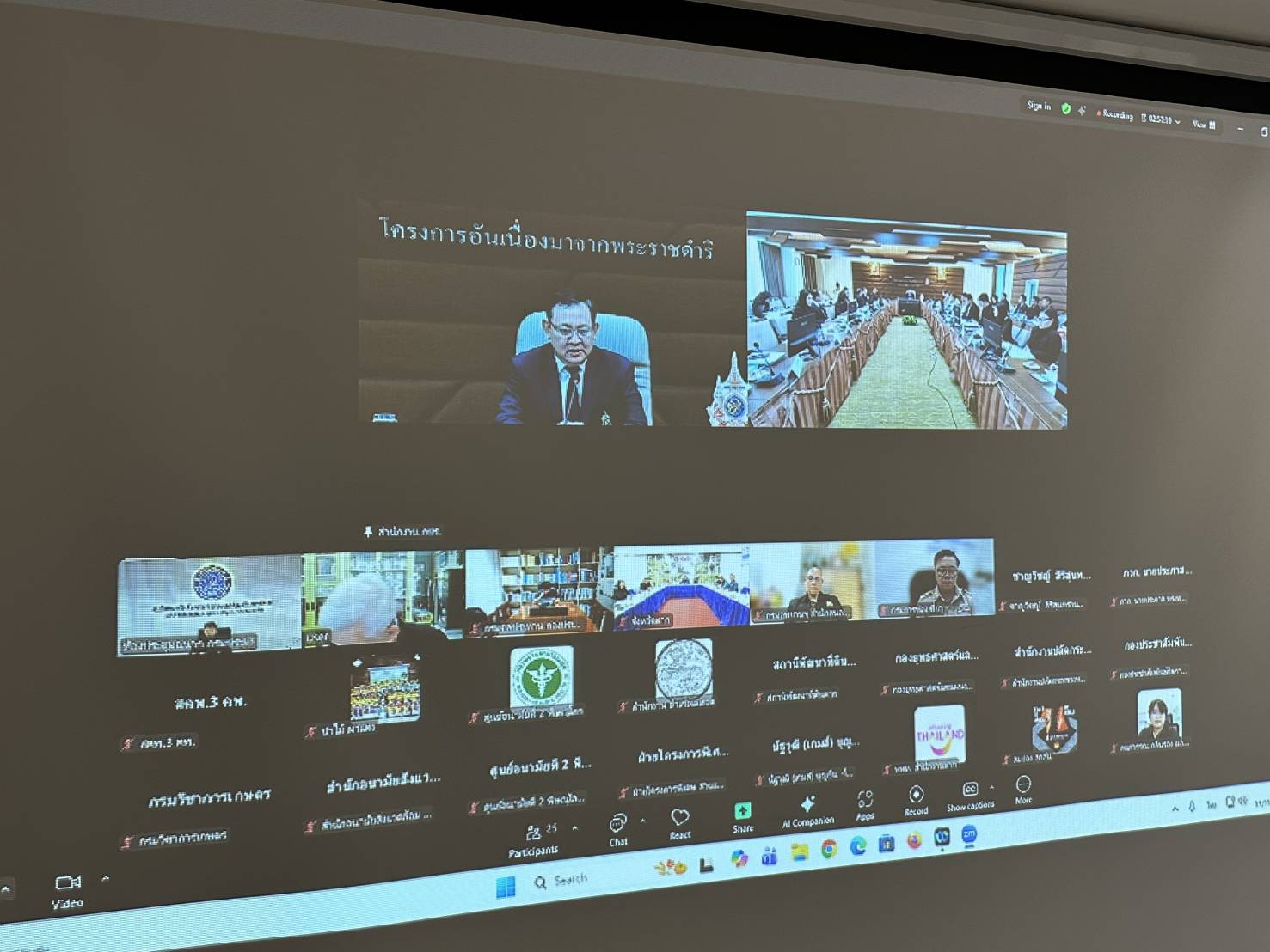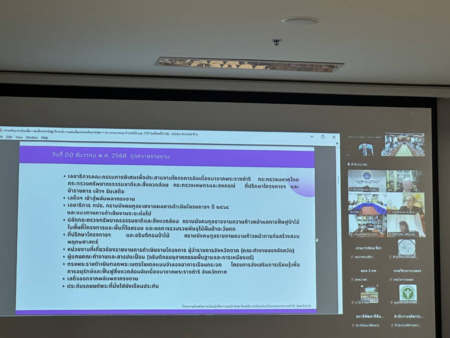 วันพฤหัสบดีที่ 13 พฤศจิกายน 2568 เวลา 13.30 – 15.30 น. นายโยธิน  เทอดวงศ์วรกุล ผู้อำนวยการกองโครงการอันเนื่องมาจากพระราชดำริและกิจกรรมพิเศษ มอบหมายให้นายวชิระ กิติมศักดิ์ หัวหน้ากลุ่มโครงการอันเนื่องมาจากพระราชดำริ เข้าร่วมประชุมคณะกรรมการบริหารโครงการส่งเสริมการเรียนรู้เพื่อการอนุรักษ์และฟื้นฟูสิ่งแวดล้อมอันเนื่องมาจากพระราชดำริ จังหวัดตาก ครั้งที่ 1/2568 ผ่านระบบประชุมทางไกลออนไลน์ด้วยโปรแกรม Zoom Cloud Meetings ในการประชุมมีนายศุภรัชต์ อินทราวุธ รองเลขาธิการ กปร. เป็นประธานการประชุม ที่ประชุมแจ้งการเตรียมการรับเสด็จฯ สมเด็จพระกนิษฐาธิราชเจ้า กรมสมเด็จพระเทพรัตนราชสุดา ฯ สยามบรมราชกุมารี ในห้วงเดือนธันวาคม 2568 และผลการดำเนินงานของคณะอนุกรรมการชุดต่างๆ ในปี 2568 และแนวทางในการดำเนินงานในปี 2569