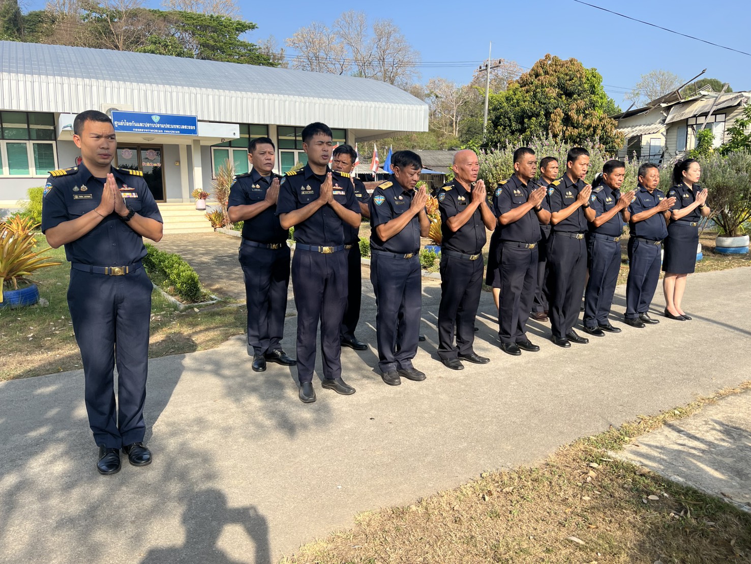 วันจันทร์ที่ 9 มีนาคม 2569 เจ้าหน้าที่ศูนย์ป้องกันและปราบปรามประมงทะเลระยอง กองตรวจการประมง กรมประมง ร่วมกิจกรรมเข้าแถวเคารพธงชาติและสวดมนต์ไหว้พระ พร้อมฝึกระเบียบแถว "ร่วมยืนสงบนิ่ง น้อมถวายความอาลัยแด่ สมเด็จพระนางเจ้าสิริกิติ์ พระบรมราชินีนาถ พระบรมราชชนนี พันปีหลวง เพื่อแสดงความจงรักภักดีต่อสถาบันชาติ ศาสนา และพระมหากษัตริย์" และเป็นการเตรียมพร้อมในการปฏิบัติหน้าที่ราชการประจำสัปดาห์ อันเป็นการเพิ่มประสิทธิภาพในการปฏิบัติงาน เสริมสร้างความรักสามัคคีในองค์กร ศปท.ระยอง