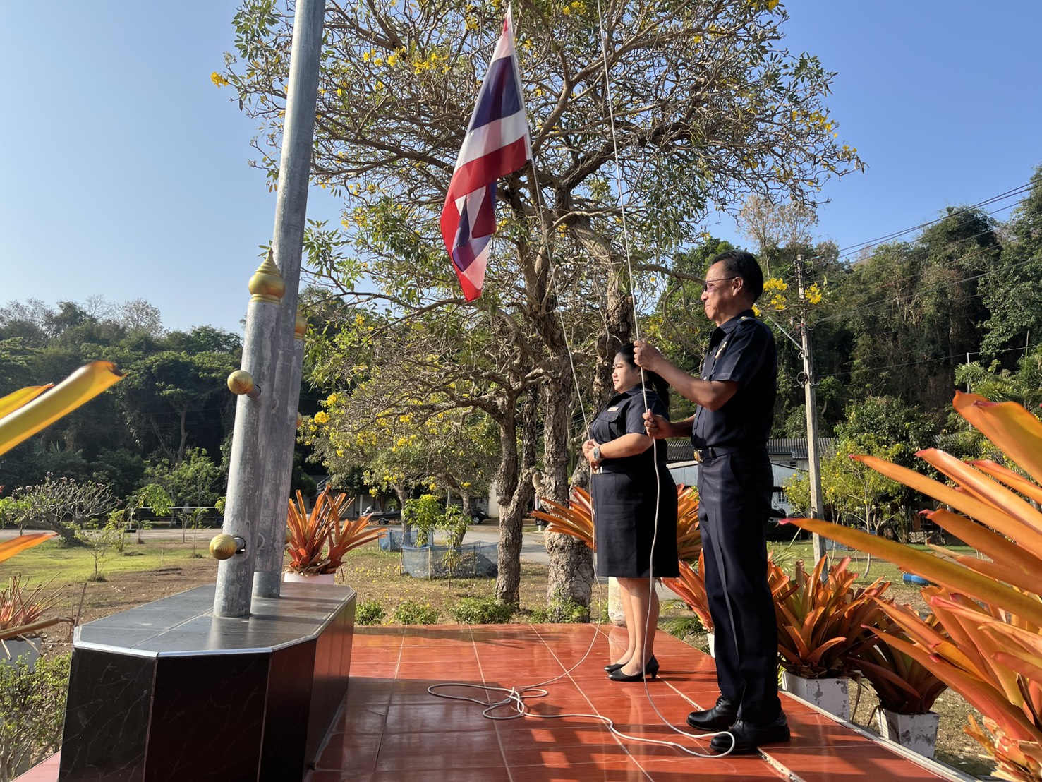 ร่วมกิจกรรมเข้าแถวเคารพธงชาติและสวดมนต์ไหว้พระ