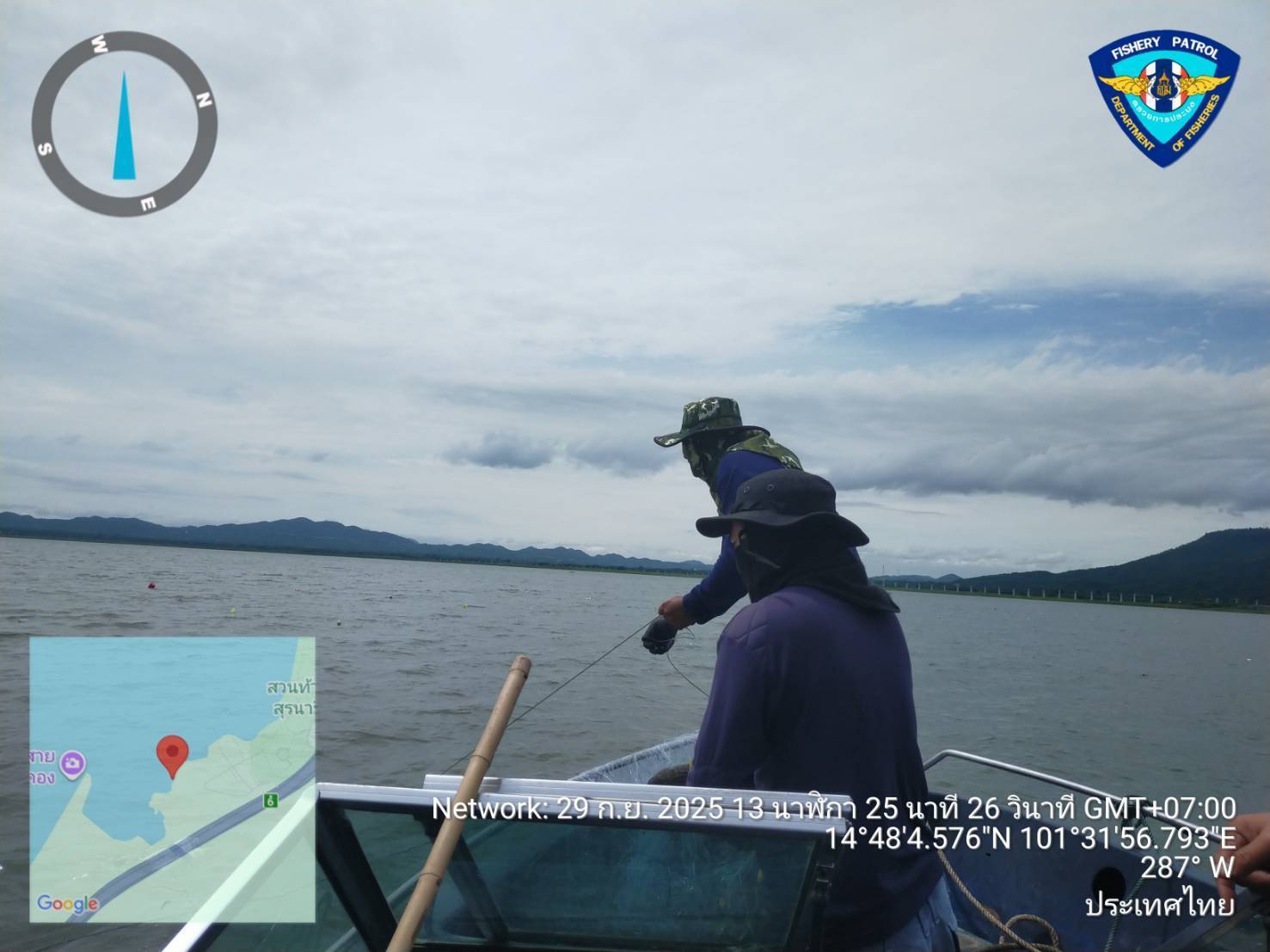 ตามพระราชกำหนดการประมง พ.ศ. 2558 และที่แก้ไขเพิ่มเติม โดยไม่ได้รับอนุญาต นำส่งพนักงานสอบสวน สถานีตำรวจภูธรหนองสาหร่าย อำเภอปากช่อง จังหวัดนครราชสีมา เพื่อลงบันทึกประจำวันไว้เป็นหลักฐาน ตาม ปจว. ข้อ 1ลงวันที่ 30 กันยายน2568 เวลา 10.12น. พนักงานสอบสวน ร.ต.อ.บุญหลาย ชัยทิพย์ ผู้รับแจ้งความไว้วันที่ 29 กันยายน 2568 ศูนย์ป้องกันและปราบปรามประมงน้ำจืดนครราชสีมา โดยนายชูศักดิ์ จงงาม ผู้อำนวยการศูนย์ฯ มอบหมายให้นายชาญชัย อ่องสันเทียะ เจ้าพนักงานประมงปฏิบัติงาน และเจ้าหน้าที่ศูนย์ฯ ออกปฏิบัติงานควบคุมเฝ้าระวังการทำการประมงผิดกฎหมายในเขตรักษาพันธุ์สัตว์น้ำ พื้นที่อ่างเก็บน้ำลำตะคอง อำเภอปากช่อง จังหวัดนครราชสีมา ดำเนินการรื้อถอนเครื่องมือ ตาข่ายเอ็นขนาดช่องตา 17 เซนตริเมตร กว้าง 2 เมตร ยาว 50 เมตร จำนวน 5 ผืน ทำการประมงในเขตพื้นที่รักษาพันธุ์สัตว์น้ำเป็นการฝ่าฝืน