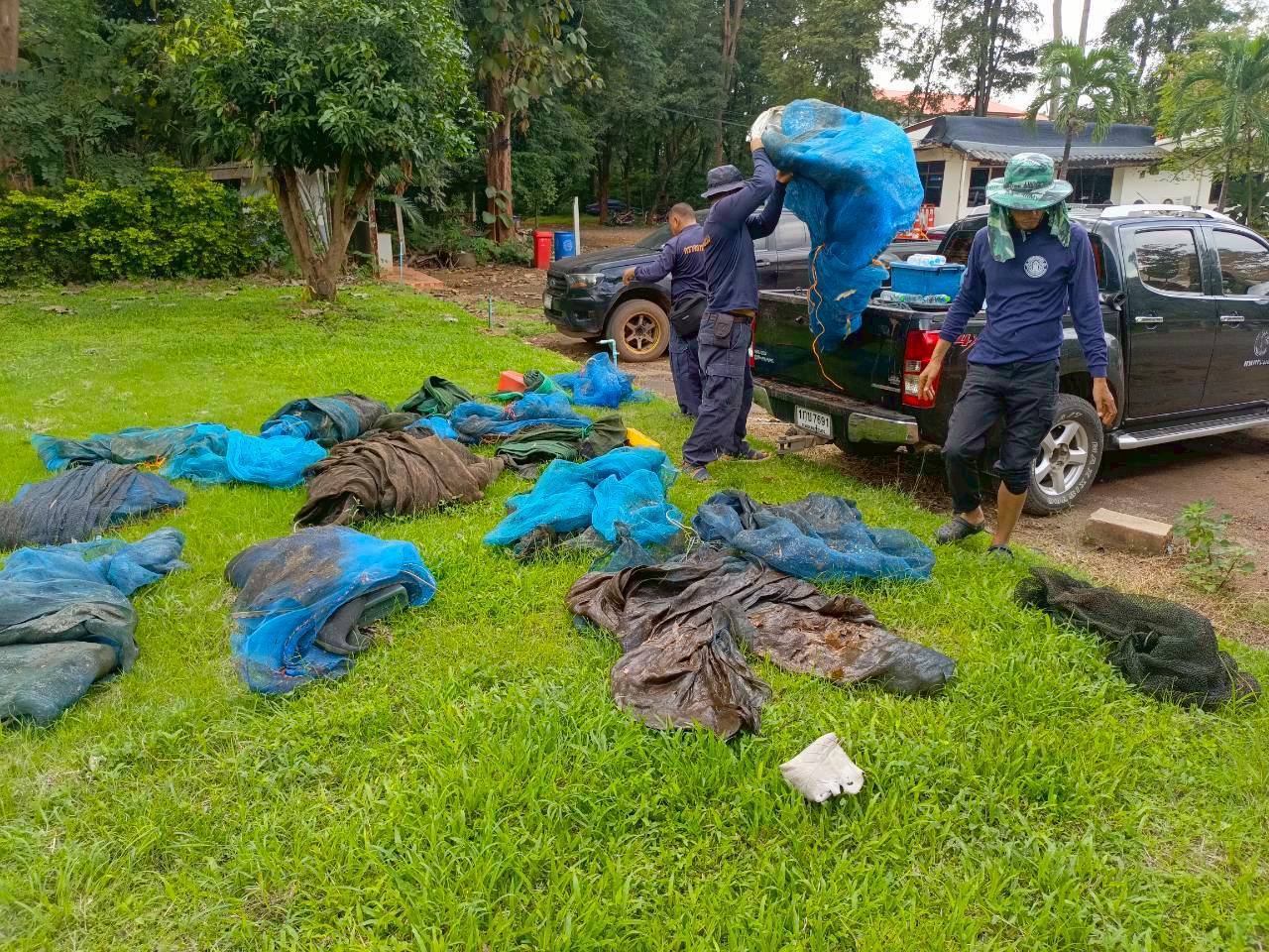 วันที่ 11 พฤศจิกายน 2568 ศูนย์ป้องกันและปราบปรามประมงน้ำจืดนครราชสีมา โดยนายชูศักดิ์ จงงาม ผู้อำนวยการศูนย์ฯ มอบหมายให้นาย ชาญชัย อ่องสันเทียะ เจ้าพนักงานประมงปฏิบัติงาน และเจ้าหน้าที่ศูนย์ฯ รวม 8 นาย ออกปฏิบัติงานควบคุมเฝ้าระวังการทำการประมงผิดกฏหมาย ในพื้นที่จับสัตว์น้ำที่เป็นสาธารณสมบัติของแผ่นดิน พื้นที่น่านน้ำภายในโดยไม่ได้รับอนุญาต ตำบลสารภี อำเภอหนองบุญมาก จังหวัดนครราชสีมา ดำเนินการรื้อถอนเครื่องมือทำการประมง ดังนี้