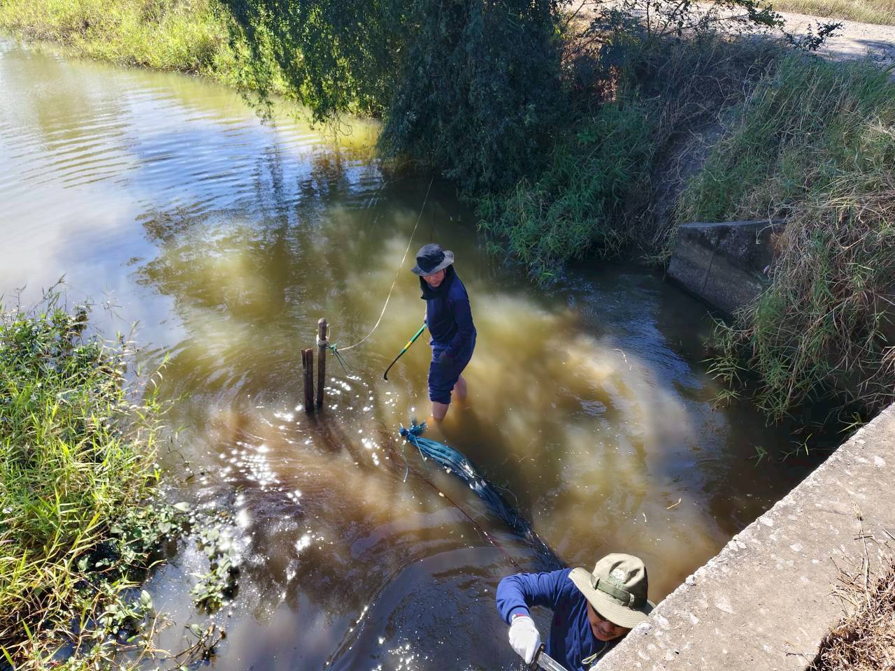วันที่ 7 มกราคม 2568 ศูนย์ป้องกันและปราบปรามประมงน้ำจืดนครราชสีมา โดยนายชูศักดิ์ จงงาม ผู้อำนวยการศูนย์ฯ มอบหมายให้นายฐาปกรณ์ สุขเสน เจ้าพนักงานประมงปฏิบัติงาน และนายชาญชัย อ่องสันเทียะ เจ้าพนักงานประมงปฏิบัติงาน พร้อมเจ้าหน้าที่ศูนย์ฯ รวม 9 นาย ออกปฏิบัติงานควบคุมเฝ้าระวังการทำการประมงผิดกฎหมาย พื้นที่คลองลำคันฉู ตำบลบ้านเพชร อำเภอบำเหน็จณรงค์ จังหวัดชัยภูมิ ดำเนินการรื้อถอนเครื่องมือทำการประมง ดังนี้