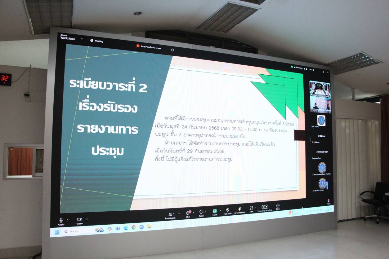วันพุธที่ 22 ตุลาคม 2568 เวลา 09.30 น. ณ ห้องประชุมพะยูน ชั้น 7 อาคารจุฬาภรณ์ กรมประมง และผ่านระบบการประชุม Zoom Cloud Meetings