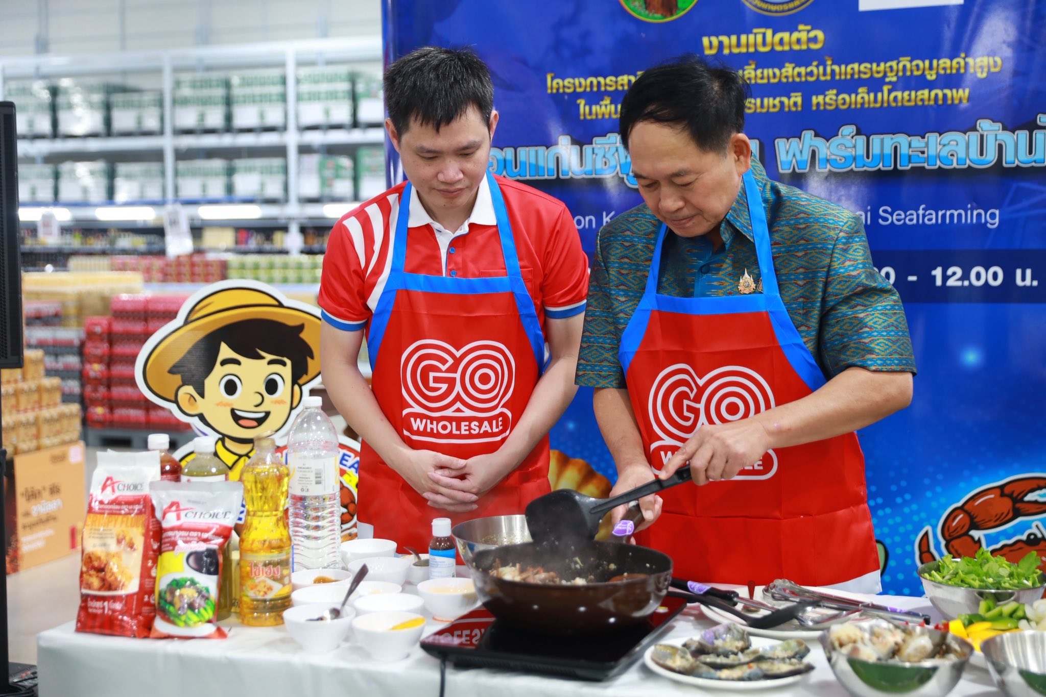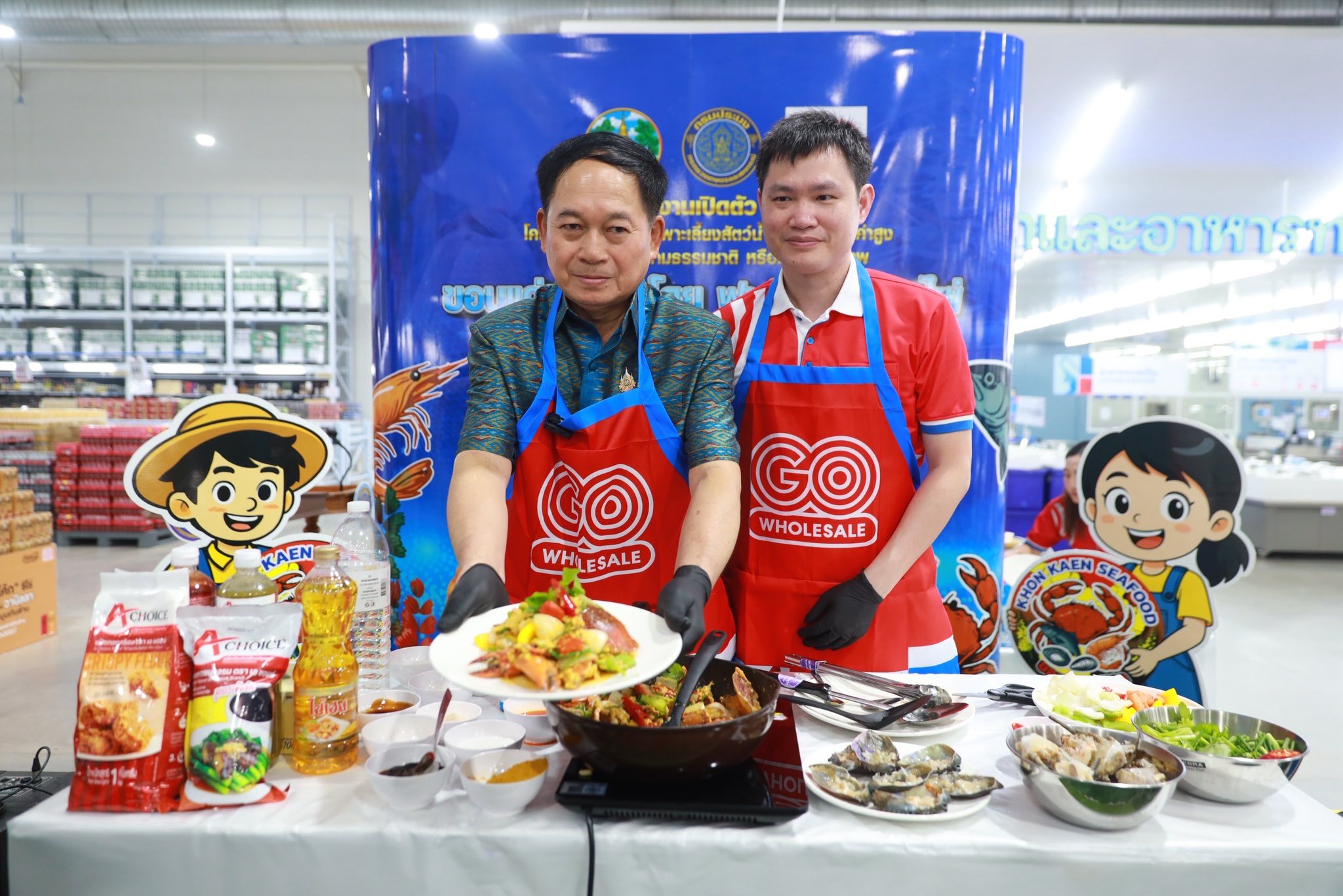 วันที่ 12 สิงหาคม 2568 นายสมศักดิ์ ทองหุล ผู้อำนวยการศูนย์วิจัยและพัฒนาประมงน้ำจืดขอนแก่น พร้อมด้วยนายวรปรัชญ์ เหาะเจริญ นักวิชาการประมงชำนาญการ ร่วมงานเปิดตัวโครงการขอนแก่นซีฟู้ด โดยฟาร์มทะเลบ้านไผ่ โดยมี นายไกรสร กองฉลาด ผู้ว่าราชการจังหวัดขอนแก่น เป็นประธานเปิดงาน นายสุริยา จงโยธา ประมงจังหวัดขอนแก่น กล่าวรายงานถึงวัตถุประสงค์ของโครงการ ฯ เพื่อนำเสนอผลผลิตอาหารทะเลของฟาร์มทะเลบ้านไผ่ และกลุ่มเกษตรกรอำเภอบ้านไผ่ อาทิ ปูทะเล กุ้งขาวแวนนาไมน์ กุ้งก้ามกราม ปลากะพงขาว และปลานิลน้ำกร่อย ซึ่งเป็นผลผลิตจากพื้นที่ดินเค็มที่ถูกพัฒนาให้เพาะเลี้ยงสัตว์น้ำได้สำเร็จตามแนวคิดของผู้ว่าราชการจังหวัดขอนแก่น ที่ต้องการเพิ่มทางเลือกอาชีพและสร้างรายได้ให้เกษตรกรอย่างมั่นคง ทั้งนี้ ศูนย์ค้าส่งวัตถุดิบอาหาร “โก โฮลเซลล์” สาขาขอนแก่น ร่วมสนับสนุนโครงการตามนโยบายส่งเสริมผลผลิตเกษตรกรไทย ด้วยการแลกเปลี่ยนความรู้ด้านการตลาด ลงพื้นที่สำรวจด้านศักยภาพและหาแนวทางพัฒนาร่วมกัน เพื่อผลักดันสินค้าจากฟาร์มทะเลบ้านไผ่ในการจัดงานครั้งนี้ ผู้ว่าราชการจังหวัดขอนแก่น ได้สาธิตการประกอบอาหารจากผลผลิตของฟาร์มทะเลบ้านไผ่ ได้แก่ “ปูผัดผงกะหรี่” ให้ผู้ร่วมงานและสื่อมวลชนได้ชิมกัน