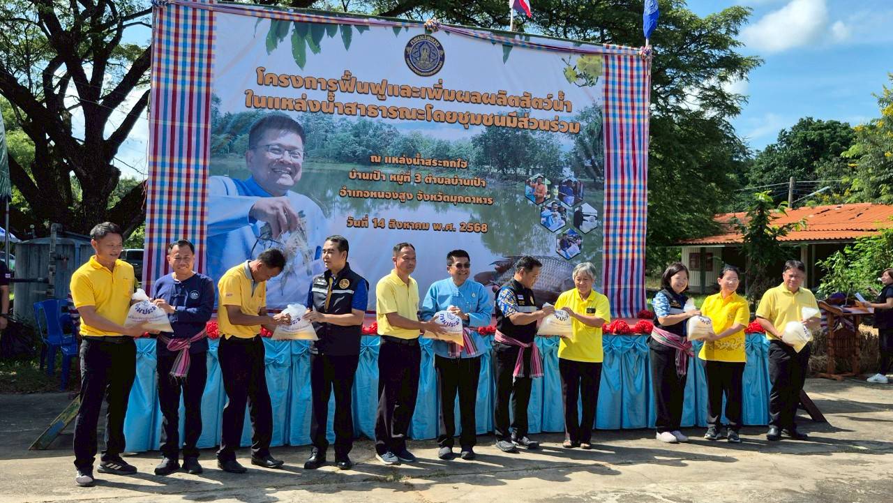 ร่วมลงพื้นที่กับอธิบดีฯ และคณะ เดินทางไปยังแหล่งน้ำสระกกไฮ บ้านเป้า อำเภอหนองสูง จังหวัดมุกดาหาร เปิด "โครงการฟื้นฟูและเพิ่มผลผลิตสัตว์น้ำในแหล่งน้ำสาธารณะโดยชุมชนมีส่วนร่วม” และร่วมปล่อยพันธุ์สัตว์น้ำ