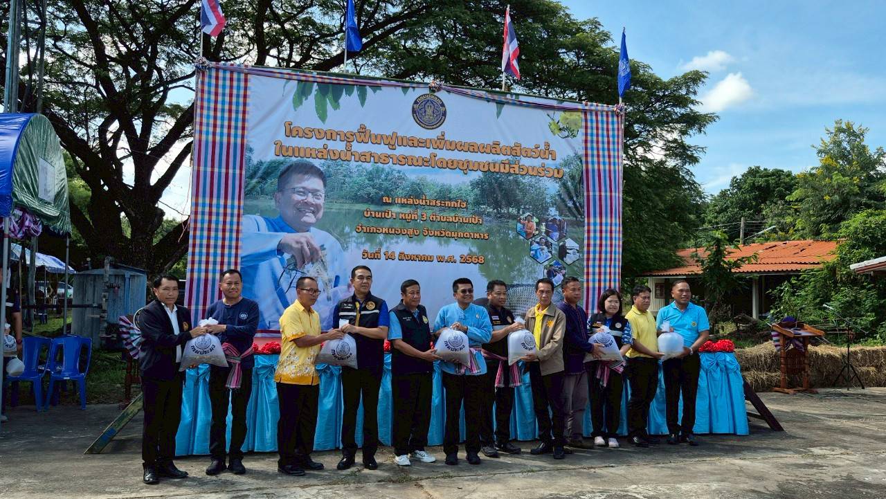 บ้านเป้า หมู่ 3 ตำบลบ้านเป้า อำเภอหนองสูง จังหวัดมุกดาหาร เป็นประธานเปิด "โครงการฟื้นฟูและเพิ่มผลผลิตสัตว์น้ำในแหล่งน้ำสาธารณะโดยชุมชนมีส่วนร่วม” และร่วมปล่อยพันธุ์สัตว์น้ำ จำนวน 202,200 ตัว ประกอบด้วย ปลาตะเพียน ปลาบ้า ปลานิล ปลายี่สกไทย และปลาบึก โอกาสนี้ อธิบดีฯ ได้มอบพันธุ์สัตว์น้ำให้แก่ผู้นำชุมชนในพื้นที่อำเภอหนองสูง 6 ตำบล รวม 1,420,000 ตัว ประกอบด้วย กุ้งก้ามกราม ปลานิล ปลายี่สกเทศ ปลาตะเพียน ปลาสร้อยขาว ปลากระแห ปลาไน ปลาสวาย และปลากาดำ เพื่อเพิ่มผลผลิตสัตว์น้ำจืดให้เพียงพอต่อการบริโภค สร้างรายได้เสริม และลดรายจ่าย พร้อมส่งเสริมให้ชุมชนมีความรู้ด้านการจัดการแหล่งน้ำชุมชนอย่างยั่งยืน ตามนโยบายของกระทรวงเกษตรและสหกรณ์