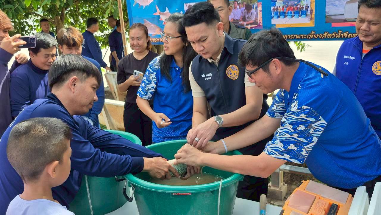 จัดกิจกรรมส่งเสริมและบริหารจัดการทรัพยากรประมงในพื้นที่ลุ่มน้ำพรมแดน ปีงบประมาณ 2568 การเพาะปลาประจำถิ่นด้วยชุดเพาะฟักเคลื่อนที่เพื่อปล่อยในแม่น้ำโขง โดยเพาะพันธุ์ปลาตะเพียนปล่อยจำนวน 5,000,000 ตัว ณ วัดชุมพล บ้านพานพร้าว ตำบลพานพร้าว อำเภอศรีเชียงใหม่ จังหวัดหนองคาย โดยมีนายจรัล กลางประดิษฐ์ นายอำเภอศรีเชียงใหม่เป็นประธาน