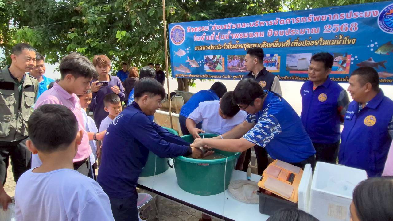กิจกรรมส่งเสริมและบริหารจัดการทรัพยากรประมงในพื้นที่ลุ่มน้ำพรมแดน ปีงบประมาณ 2568 การเพาะปลาประจำถิ่นด้วยชุดเพาะฟักเคลื่อนที่เพื่อปล่อยในแม่น้ำโขง