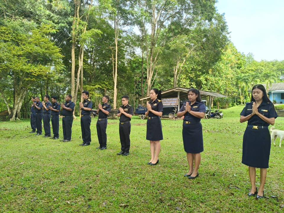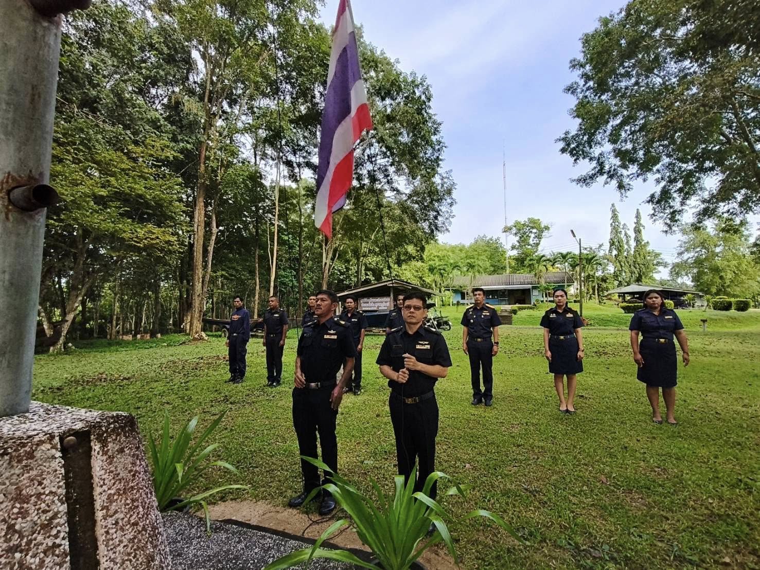 "ศูนย์ป้องกันและปราบปรามประมงน้ำจืดสุราษฏร์ธานี เข้าแถวเคารพธงชาติ เพื่อแสดงความจงรักภักดี ต่อชาติ ศาสน์ กษัตริย์"
