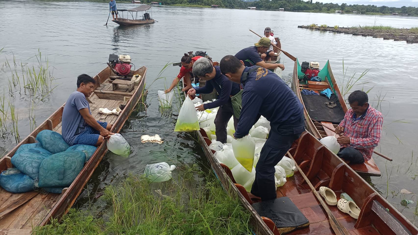 หน่วยป้องกันและปราบปรามประมงน้ำจืดเขื่อนวชิราลงกรณ (กาญจนบุรี) ดำเนินกิจกรรมจิตอาสาพัฒนาชุมชน (1 ศูนย์ 1 หน่วย 1 ชุมชนประมงต้นแบบ) ปล่อยพันธุ์สัตว์ น้ำเนื่องในโอกาสวันครบรอบวันสถาปนากรมประมง ปีที่ 99 และวันประมงแห่งชาติ ประจำปี 2568