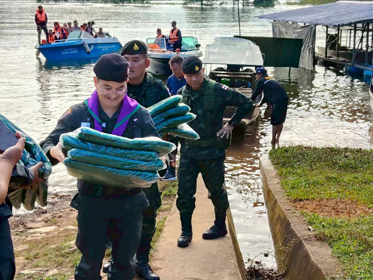 นปจ.เขื่อนวชิราลงกรณ ลาดตระเวนทางน้ำ และมอบผ้าห่มกันหนาว ร่วมกับผู้บังคับหน่วยเฉพาะกิจลาดหญ้า