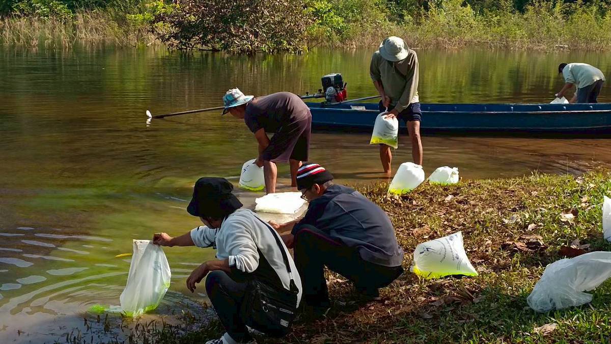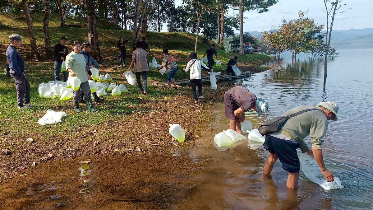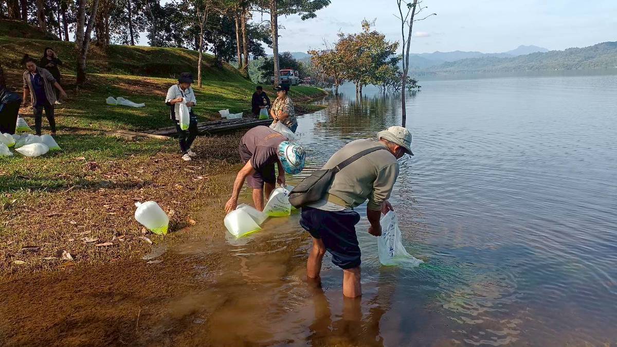 วันที่  24 พฤศจิกายน 2568 หน่วยป้องกันและปราบปรามประมงน้ำจืดเขื่อนวชิราลงกรณ (กาญจนบุรี) สังกัดศูนย์ป้องกันและปราบปรามประมงน้ำจืดกาญจนบุรี กองตรวจการประมง กรมประมง ดำเนินกิจกรรมจิตอาสาพัฒนาชุมชนประมง (1 ศูนย์ 1 หน่วย 1 ชุมชนประมงต้นแบบ) โดยจัดกิจกรรมปล่อยพันธุ์ปลากินพืช จำนวน 13,500 ตัว (ได้รับความอนุเคราะห์พันธุ์สัตว์น้ำจากการไฟฟ้าฝ่ายผลิตแห่งประเทศไทย งานเพาะเลี้ยงสัตว์น้ำ เขื่อนท่าทุ่งนา)  ร่วมกับ สมาชิกองค์กรชุมชนประมงท้องถิ่น กลุ่มเสริมสร้างการมีส่วนร่วมของชุมชนประมงบ้านรวมใจ เจ้าหน้าที่หน่วยพิทักษ์อุทยานเขาแหลมที่ 4 (วังปะโท่) และประชาชนในพื้นที่ เพื่อเพิ่มปริมาณสัตว์น้ำให้กับชุมชน บริเวณเขตอนุรักษ์สัตว์น้ำ อ่างเก็บน้ำเขื่อนวชิราลงกรณบ้านรวมใจ หมู่ที่ 8 ตำบลห้วยเขย่ง อำเภอทองผาภูมิ จังหวัดกาญจนบุรี