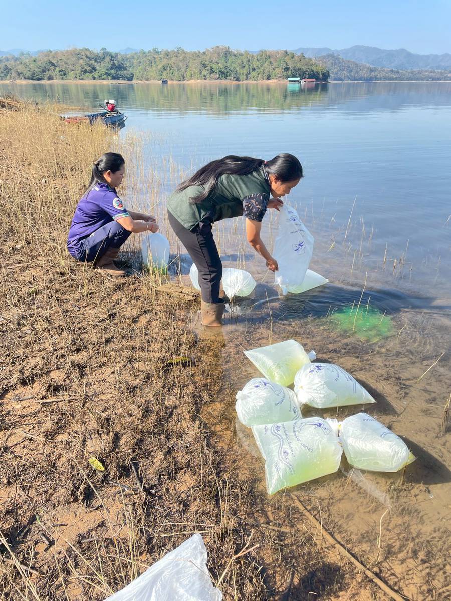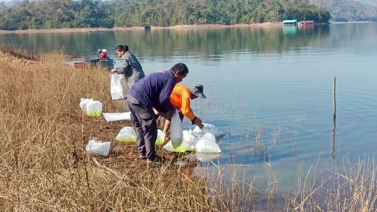 วันที่  4 กุมภาพันธ์ 2569 หน่วยป้องกันและปราบปรามประมงน้ำจืดเขื่อนวชิราลงกรณ (กาญจนบุรี) สังกัดศูนย์ป้องกันและปราบปรามประมงน้ำจืดกาญจนบุรี กองตรวจการประมง กรมประมง ดำเนินกิจกรรมจิตอาสาพัฒนาชุมชนประมง (1 ศูนย์ 1 หน่วย 1 ชุมชนประมงต้นแบบ) โดยจัดกิจกรรมปล่อยพันธุ์ปลากินพืช จำนวน 6,200 ตัว (ได้รับความอนุเคราะห์พันธุ์สัตว์น้ำจากการไฟฟ้าฝ่ายผลิตแห่งประเทศไทย งานเพาะเลี้ยงสัตว์น้ำ เขื่อนท่าทุ่งนา)  ร่วมกับ สมาชิกองค์กรชุมชนประมงท้องถิ่น กลุ่มเสริมสร้างการมีส่วนร่วมของชุมชนประมงบ้านรวมใจ เจ้าหน้าที่ทหารชุดพัฒนาสัมพันธ์มวลชนที่ 1202 กอ.รมน. ภาค 1 สย.2 ศปป.2 กอ.รมน. เจ้าหน้าที่หน่วยพิทักษ์อุทยานเขาแหลมที่ 4 (วังปะโท่) และประชาชนในพื้นที่ เพื่อเพิ่มปริมาณสัตว์น้ำให้กับชุมชน บริเวณเขตอนุรักษ์สัตว์น้ำ อ่างเก็บน้ำเขื่อนวชิราลงกรณบ้านรวมใจ หมู่ที่ 8 ตำบลห้วยเขย่ง อำเภอทองผาภูมิ จังหวัดกาญจนบุรี