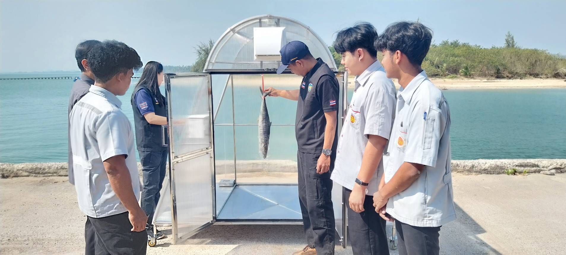 วันที่ 13 ม.ค.69 นปท.บางสะพาน ศปท.ชุมพร กองตรวจการประมง กรมประมง โดย นายสมชาย ศรีสวัสดิ์ หน.นปท.บางสะพานฯ มอบหมายให้ นายเพิ่มศักดิ์ แก้วอำไพ เจ้าพนักงานประมงปฎิบัติงาน พร้อมเจ้าหน้าที่หน่วยฯชมการสาธิต ขั้นตอนผลงานของสิ่งประดิษฐ์ของคนรุ่นใหม่ ใช้งานได้จริง (ตู้อบแห้งปลาอินทรีพลังงานแสงอาทิตย์) ที่เกิดจากการเล็งเห็นปัญหาในด้านการถนอมอาหารของชุมชนประมงและเพิ่มมูลค่าผลผลิตสัตว์น้ำให้เพิ่มขึ้น จากอาจารย์/นักศึกษา วิทยาลัยเทคนิคบางสะพานเพื่อนำผลงานเข้าประกวดสิ่งประดิษฐ์ของ คนรุ่นใหม่ ใช้งานได้จริง (ตู้อบแห้งปลาอินทรีพลังงานแสงอาทิตย์) ในระดับที่สูงขึ้น (นานาชาติ) ในวันที่ 28 – 30 ม.ค. 69 ต่อไป ณ.หน่วยป้องกันและปราบปรามประมงทะเลบางสะพาน (ประจวบคีรีขันธ์)