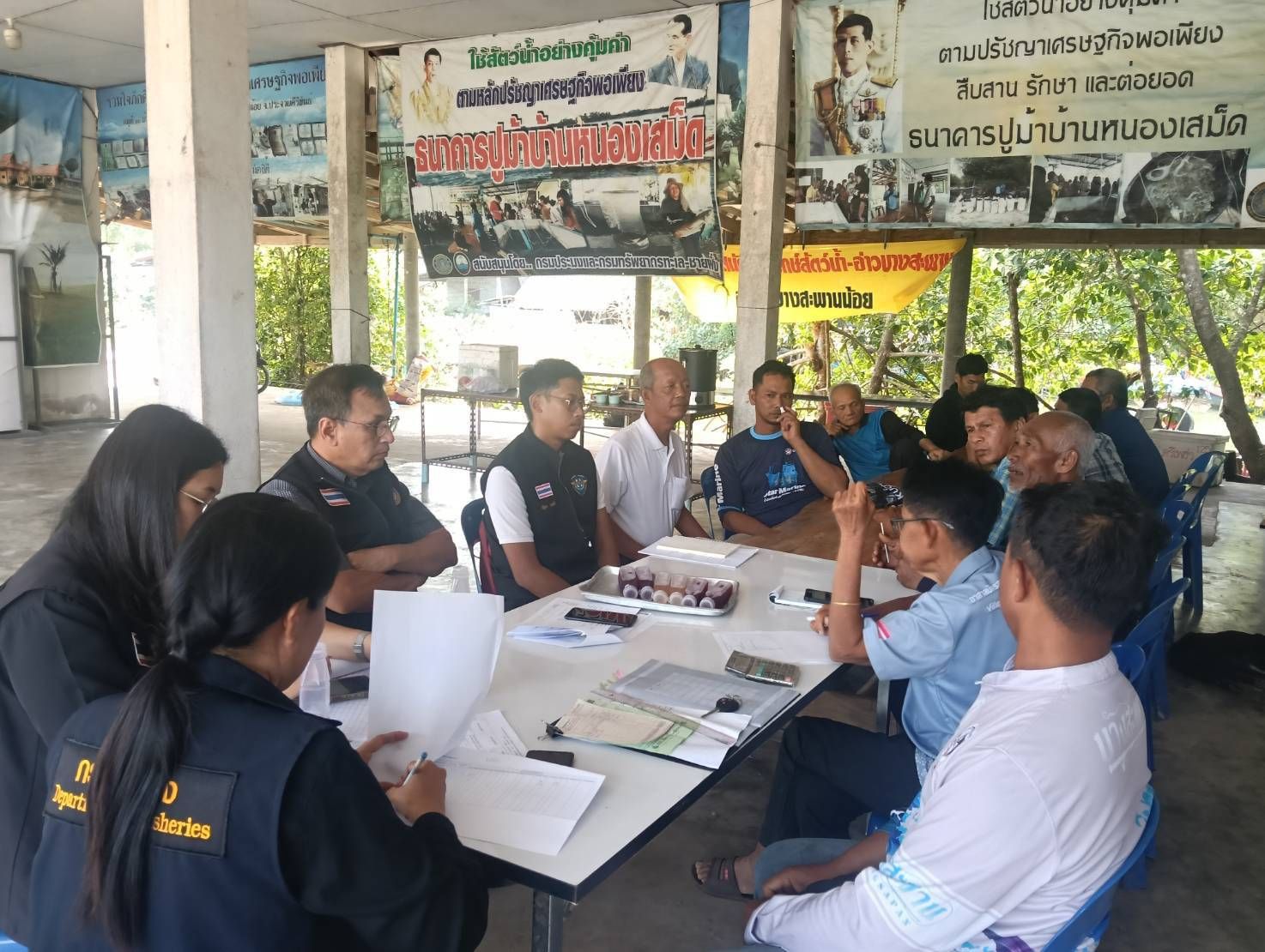 วันที่ 22 ม.ค. 69 นปท.บางสะพานฯ ศปท.ชุมพร กองตรวจการประมง กรมประมง โดยนายสมชาย ศรีสวัสดิ์ หน.นปท. บางสะพานฯ มอบหมายให้ นายณัฐกร วงษ์นิ่ม เจ้าพนักงานประมงปฏิบัติงาน พร้อมเจ้าหน้าที่หน่วยฯ ร่วมกับสำนักงานประมงจังหวัดประจวบคีรีขันธ์ และประมงอำเภอบางสะพานน้อย ประชุมติดตามผลการดำเนินโครงการสร้างความเข้มแข็งกลุ่มการผลิตด้านประมง ประจำปีงบประมาณ พ.ศ. 2569 พร้อมประชาสัมพันธ์และเชิญชวนกลุ่มชาวประมงเข้าร่วมพิธีประกาศใช้มาตรการบริหารจัดการทรัพยากรสัตว์น้ำในฤดูสัตว์น้ำมีไข่ วางไข่ และเลี้ยงตัวอ่อน ณ กลุ่มประมงบ้านหนองเสม็ด อ.บางสะพานน้อย จ.ประจวบฯ