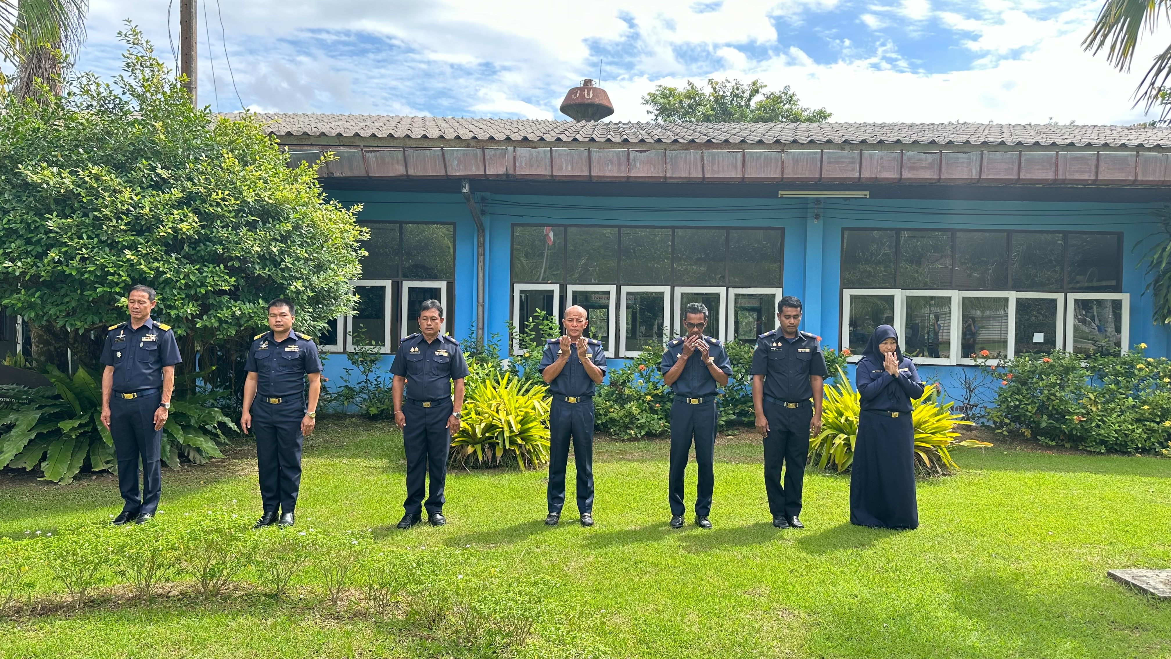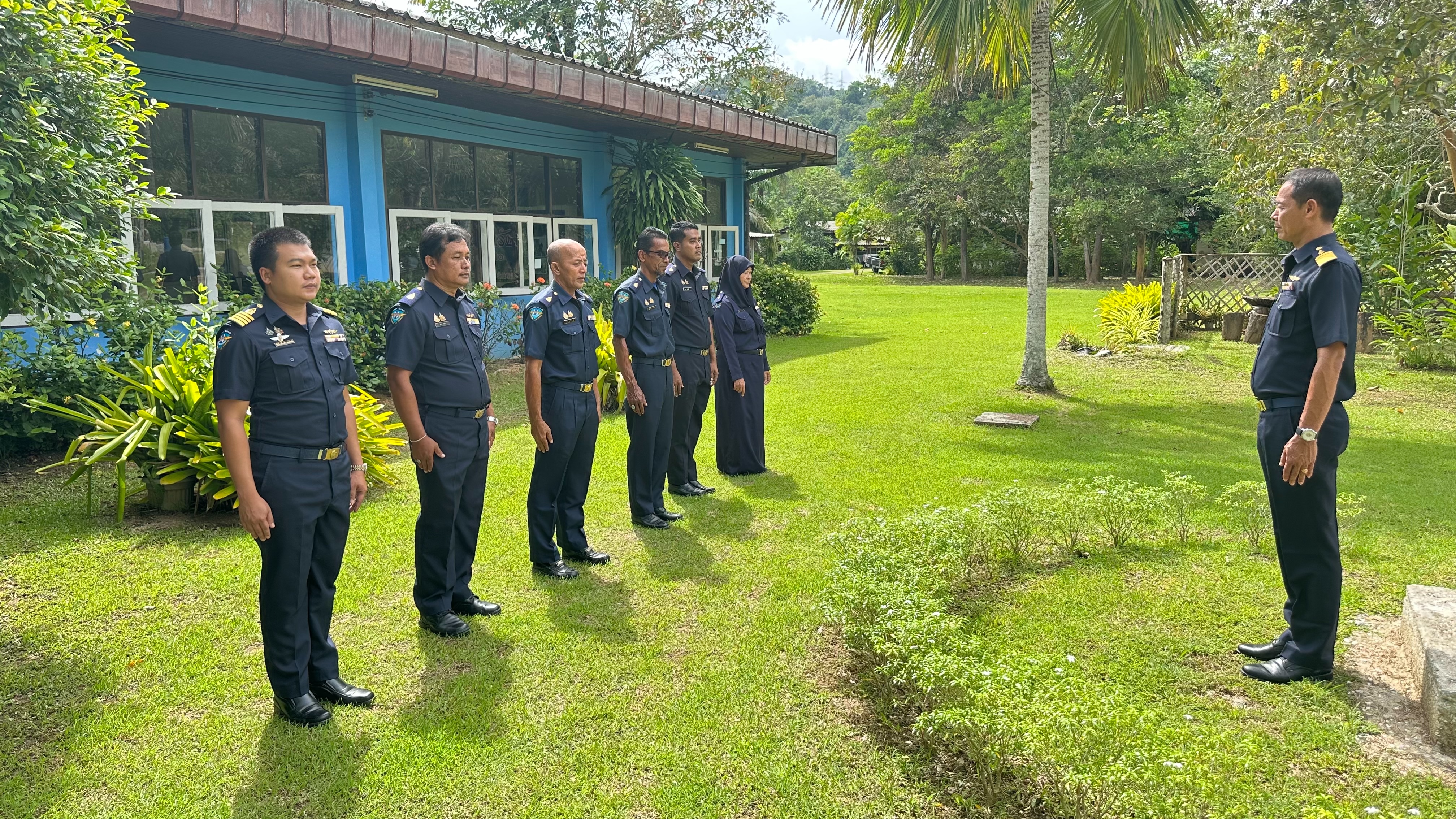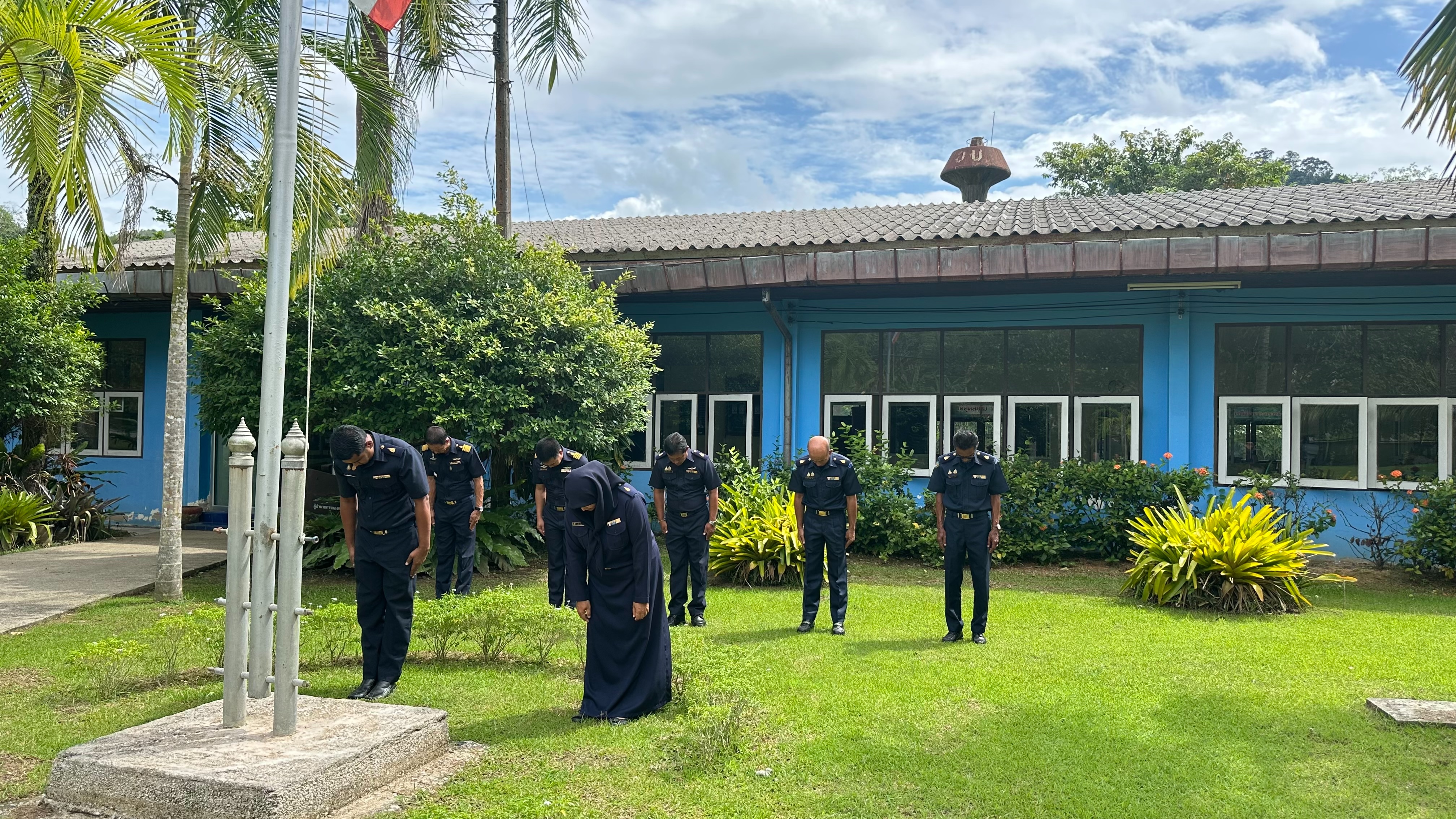 วันที่ 3 พฤศจิกายน 2568 นายวัยวุฒิ ศันติวิชยะ ตำแหน่งหัวหน้าหน่วยป้องกันและปราบปรามประมงน้ำจืดเขื่อนบางลาง (ยะลา) พร้อมด้วยเจ้าหน้าที่หน่วยฯ เข้าแถวเคารพธงชาติ ในเวลา 08.00 น. เพื่อแสดงความเคารพ และความจงรักภักดีต่อชาติ ศาสน์ กษัตริย์ พร้อมชี้แจงผลการปฏิบัติภารกิจต่างๆของหน่วยฯ รวมถึงระมัดระวังการปฏิบัติภารกิจในจังหวัดชายแดนใต้