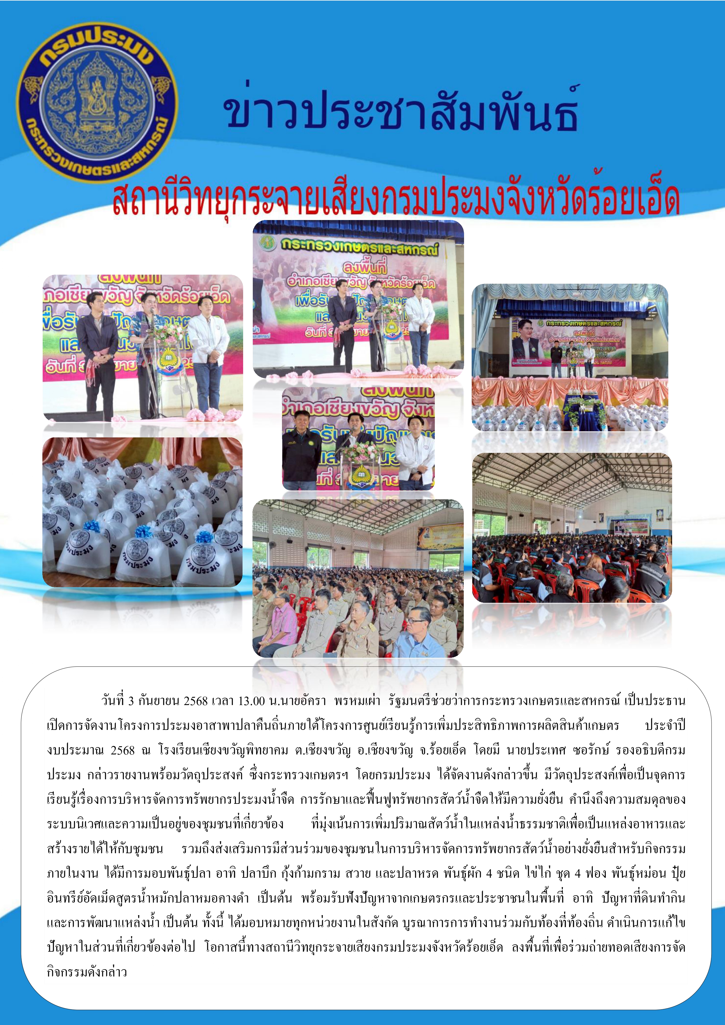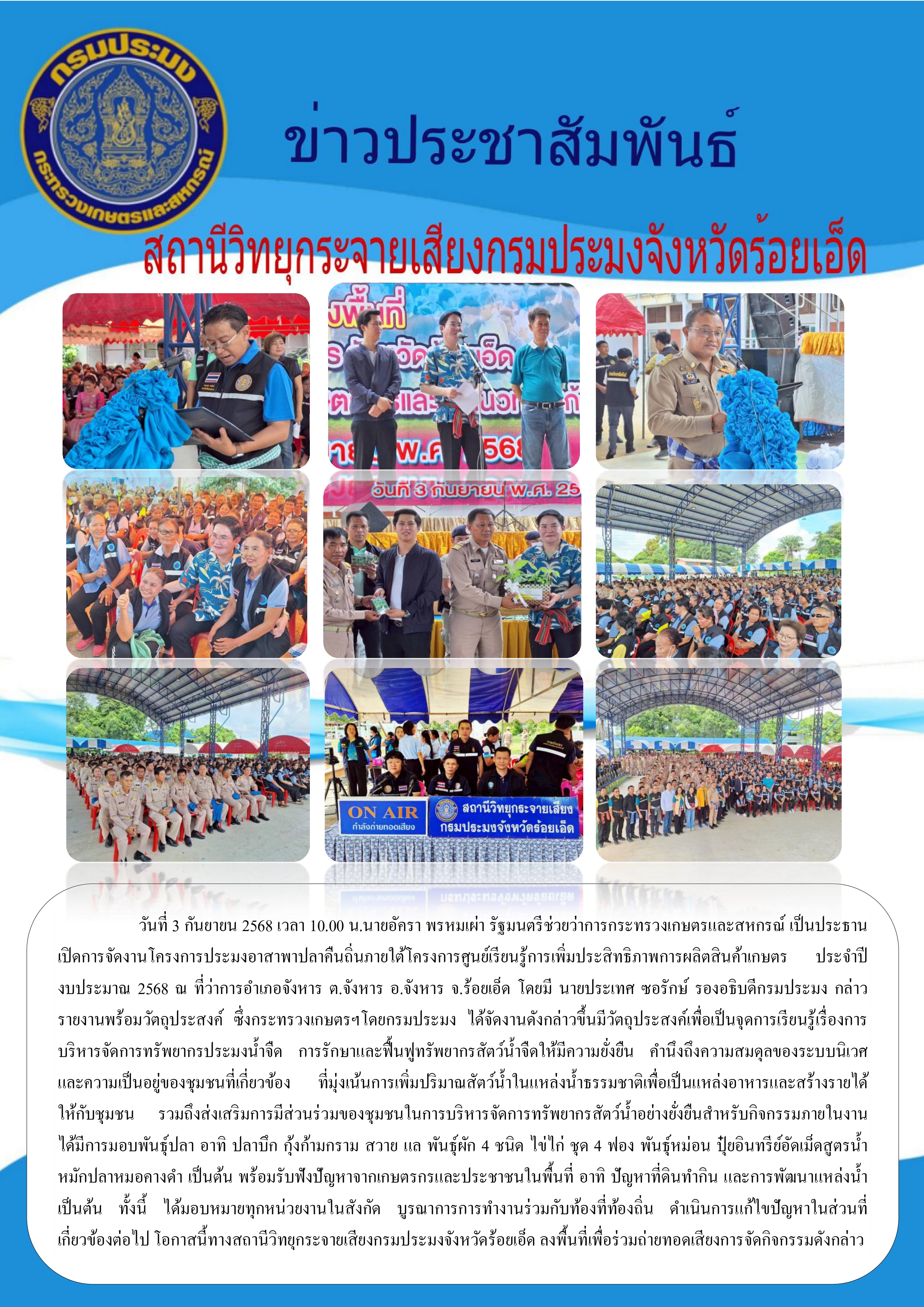 ข่าวประชาสัมพันธ์สถานีวิทยุกระจายเสียงกรมประมงจังหวัดร้อยเอ็ด