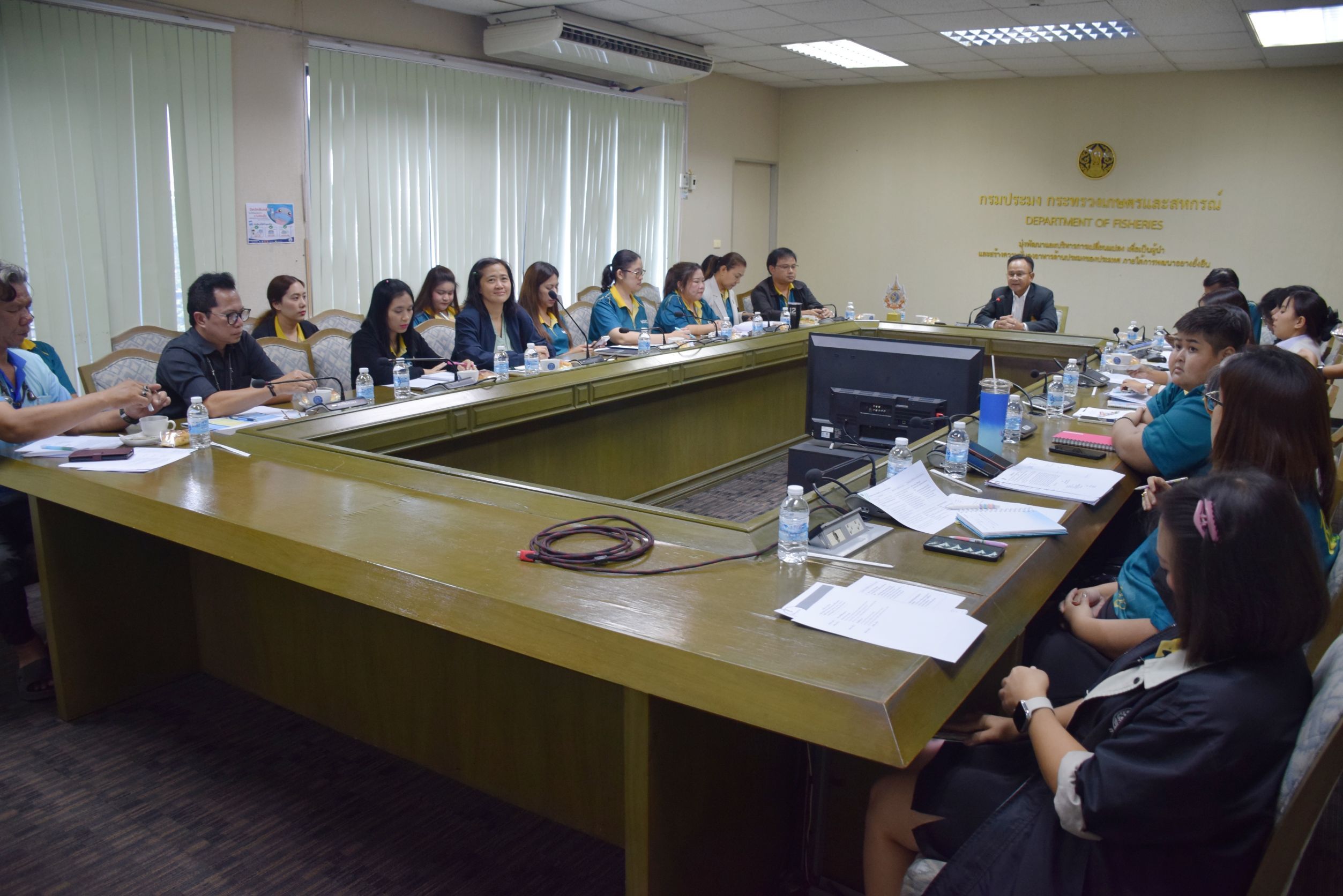 วันพุธที่ 8 ตุลาคม 2568 เวลา 13.30 น. นายศุภกิตติ์ ใสกระจ่าง เลขานุการกรม เป็นประธานการประชุมหารือหัวหน้ากลุ่ม/ฝ่าย ของสำนักงานเลขานุการกรม ครั้งที่ 7/2568 พร้อมด้วยบุคลากรในสังกัดสำนักงานเลขานุการกรม ณ ห้องประชุมทูน่า ชั้น 6 อาคารจุฬาภรณ์ กรมประมง