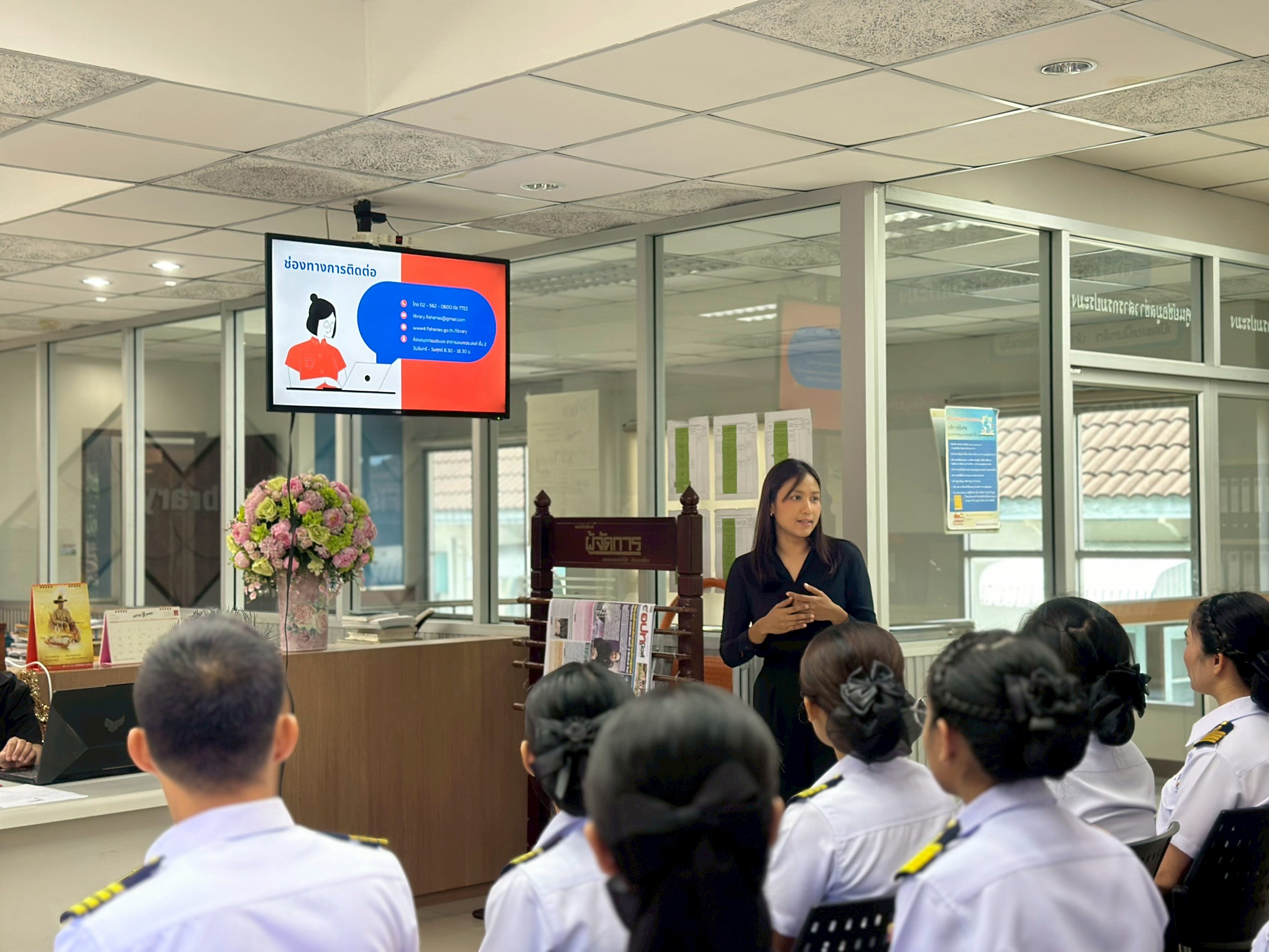 วันที่ 28 พฤศจิกายน 2568 เวลา 11.00 - 14.00 น. เลขานุการกรม มอบหมายให้กลุ่มห้องสมุดและข้อมูลข่าวสาร เข้าร่วมเป็นวิทยากรบรรยายให้ความรู้ในหัวข้อความเป็นมาหอประวัติกรมประมงและการเข้าใช้ระบบสืบค้นห้องสมุดอัตโนมัติ Elib กรมประมง ตามหลักสูตร การปฐมนิเทศและการสัมมนาร่วมกัน "หลักสูตรต้นกล้าข้าราชการ" สำหรับข้าราชการบรรจุใหม่ รุ่นที่ 6 ประจำปีงบประมาณ 2569