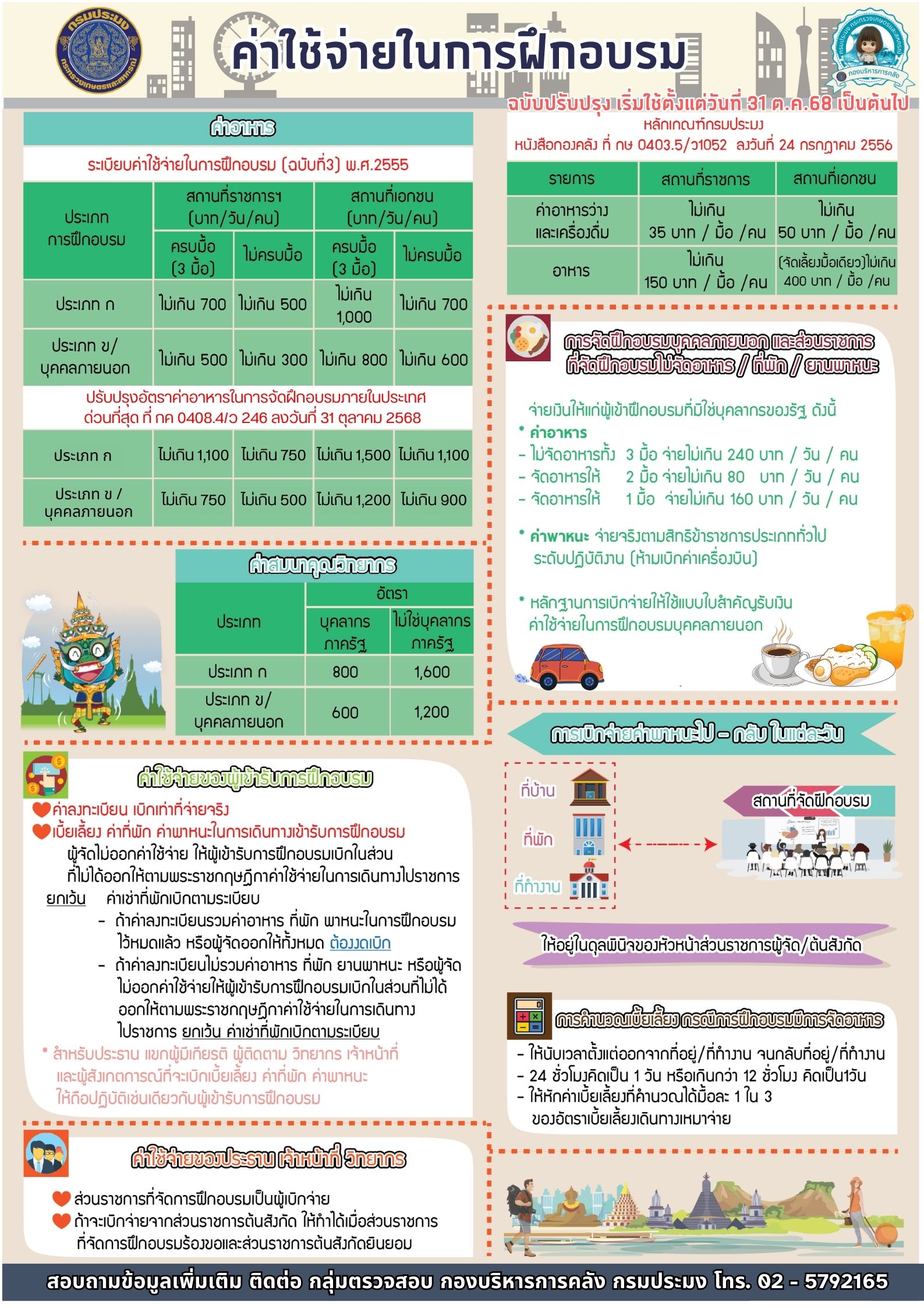NEW ค่าใช้จ่ายในการฝึกอบรม (ฉบับปรับปรุง) เริ่มใช้ตั้งแต่ 31 ต.ค. 68 เป็นต้นไป..คลิก