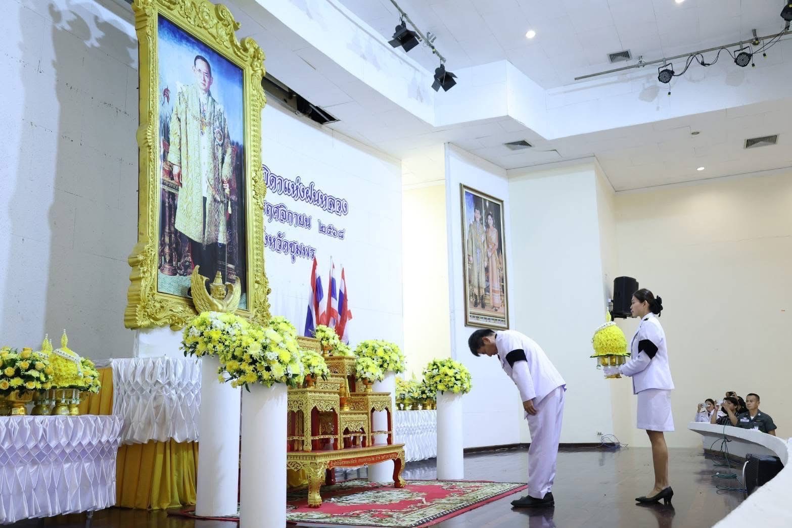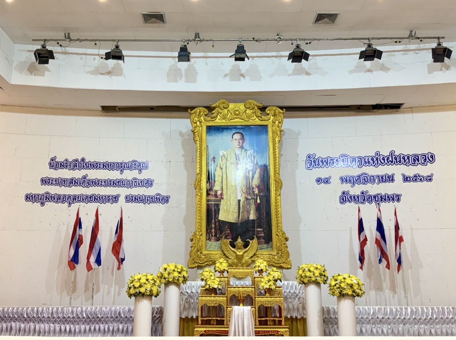 วันที่ 14 พฤศจิกายน 2568 นางสมพิศ แย้มเกษม ผู้อำนวยการศูนย์วิจัยและพัฒนาการเพาะเลี้ยงสัตว์น้ำชายฝั่งชุมพร พร้อมด้วยข้าราชการ เข้าร่วมพิธีวางพานพุ่มดอกไม้สดถวายราชสักการะ เพื่อน้อมรำลึกในพระมหากรุณาธิคุณ พระบาทสมเด็จพระบรมชนกาธิเบศร มหาภูมิพลอดุลยเดชมหาราช บรมนาถบพิตร เนื่องใน “วันพระบิดาแห่งฝนหลวง“ ประจำปี 2568 ณ หอประชุมจังหวัดชุมพร ตำบลนาชะอัง อำเภอเมืองชุมพร จังหวัดชุมพร โดยมีนายเธียรชัย ชูกิตติวิบูลย์ ผู้ว่าราชการจังหวัดชุมพร เป็นประธานในพิธี