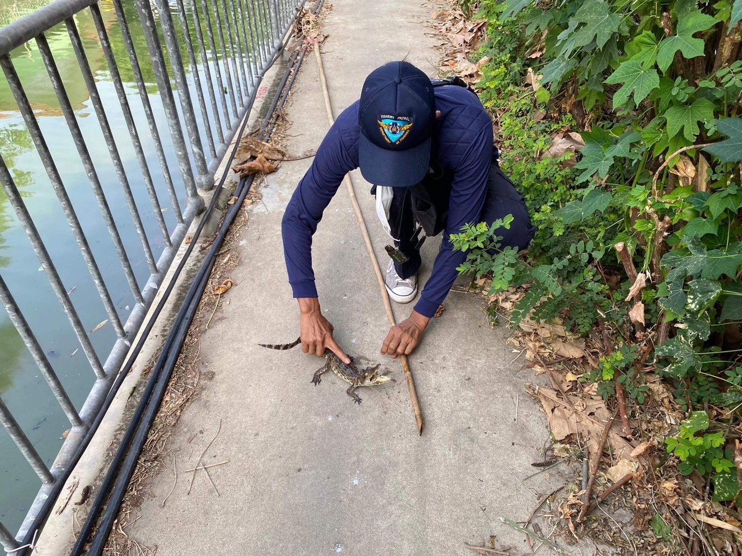วันที่ 22 พ.ค.66 ศูนย์ป้องกันและปราบปรามประมงทะเลสมุทรปราการได้รับการประสานจากสำนักงานประมงพื้นที่กรุงเทพฯ ให้ลงพื้นตรวจสอบและจับจระเข้บริเวณวัดไตรรัตนาราม คลองหลุมไผ่ แขวงอนุสาวรีย์ เขตบางเขน กรุงเทพฯ มอบหมายให้นายธนศักดิ์ นะมัธยา และนายฐิตินันท์ อุนทุโร ร่วมกับเจ้าหน้าที่สำนักงานประมงพื้นที่กรุงเทพฯ ลงพื้นที่ ผลการดำเนินงานสามารถจับจระเข้ จำนวน 1 ตัว ขนาด 1 ฟุต ซึ่งสำนักงานประมงพื้นที่กรุงเทพฯ เป็นผู้เก็บรักษาเพื่อส่งต่อหน่วยงานที่เกี่ยวข้องต่อไป