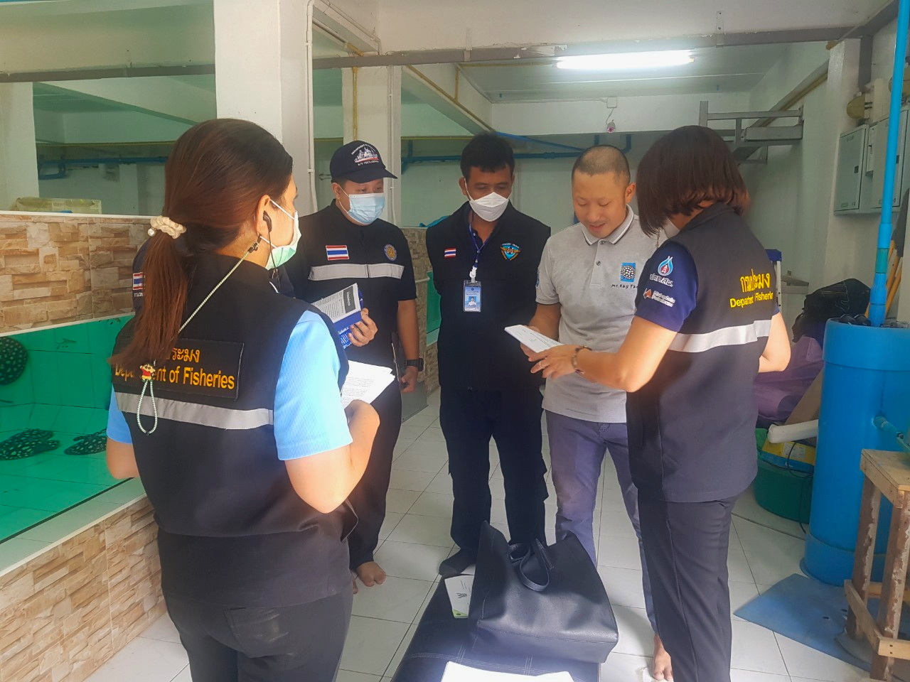 วันที่ 7 มิถุนายน 2566 ศูนย์ป้องกันและปราบปรามประมงทะเลสมุทรปราการ โดย ว่าที่ร.ท. สมศักดิ์  สุรัตนมาลย์ ผอ.ศปท.สมุทรปราการ มอบหมายให้ นายประกิจ  แว่วเสียง เจ้าพนักงานประมงปฏิบัติงาน พร้อมเจ้าหน้าที่รวม 4 นาย ร่วมกับสำนักงานประมงจังหวัดสมุทรสาคร ศูนย์วิจัยและพัฒนาการเพาะเลี้ยงสัตว์น้ำชายฝั่งสมุทรสาคร ศูนย์วิจัยและพัฒนาประมงทะเลสมุทรปราการ  ลงพื้นที่ควบคุมบังคับใช้กฎหมายภายใต้มาตรา 64 และมาตรา 65 แห่งพระราชกำหนดการประมง พ.ศ. 2558 และที่แก้ไขเพิ่มเติม ณ ฟาร์มปลาสวยงาม อำเภอเมืองสมุทรสาคร จังหวัดสมุทรสาคร จำนวน 2 แห่ง