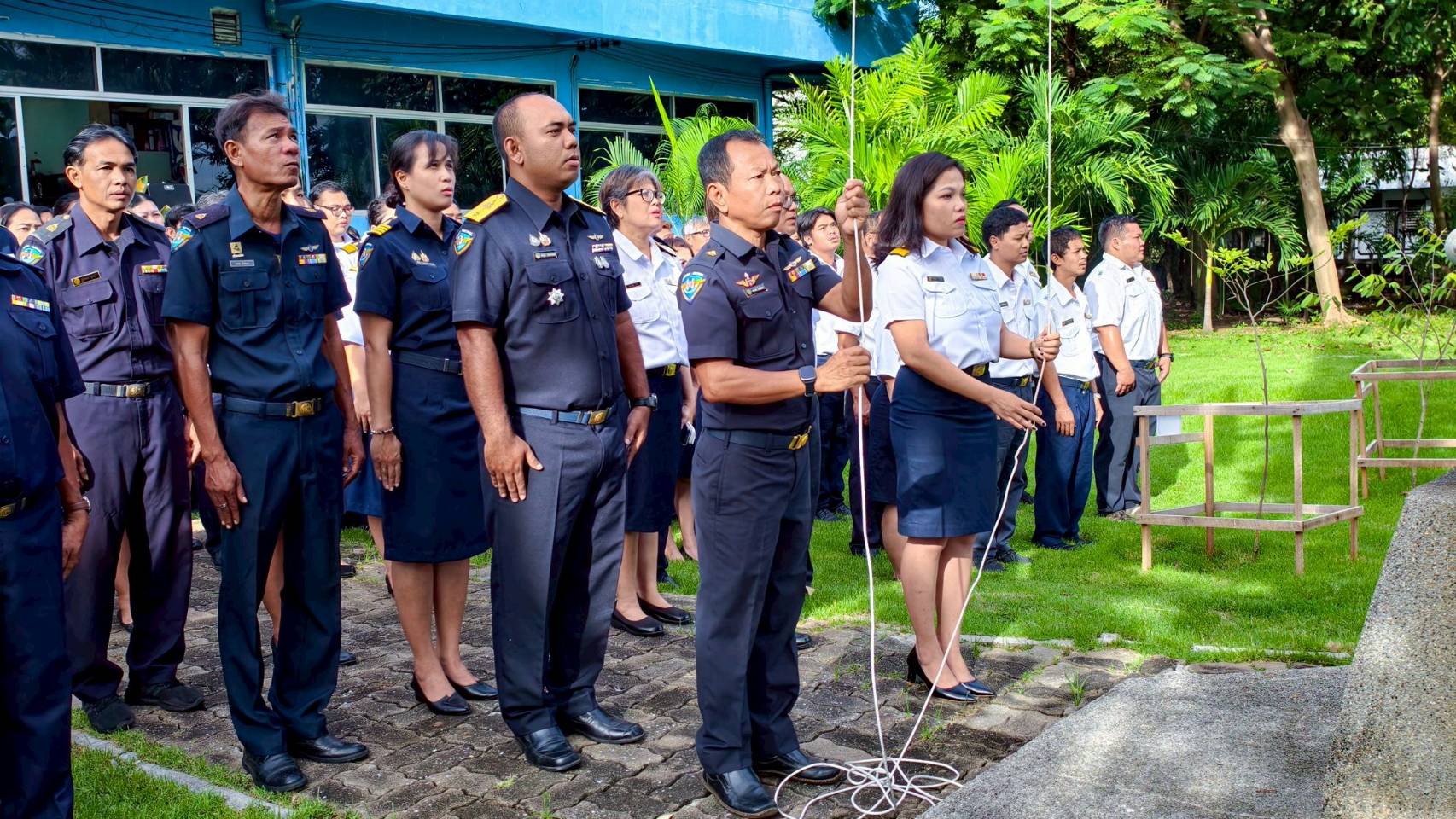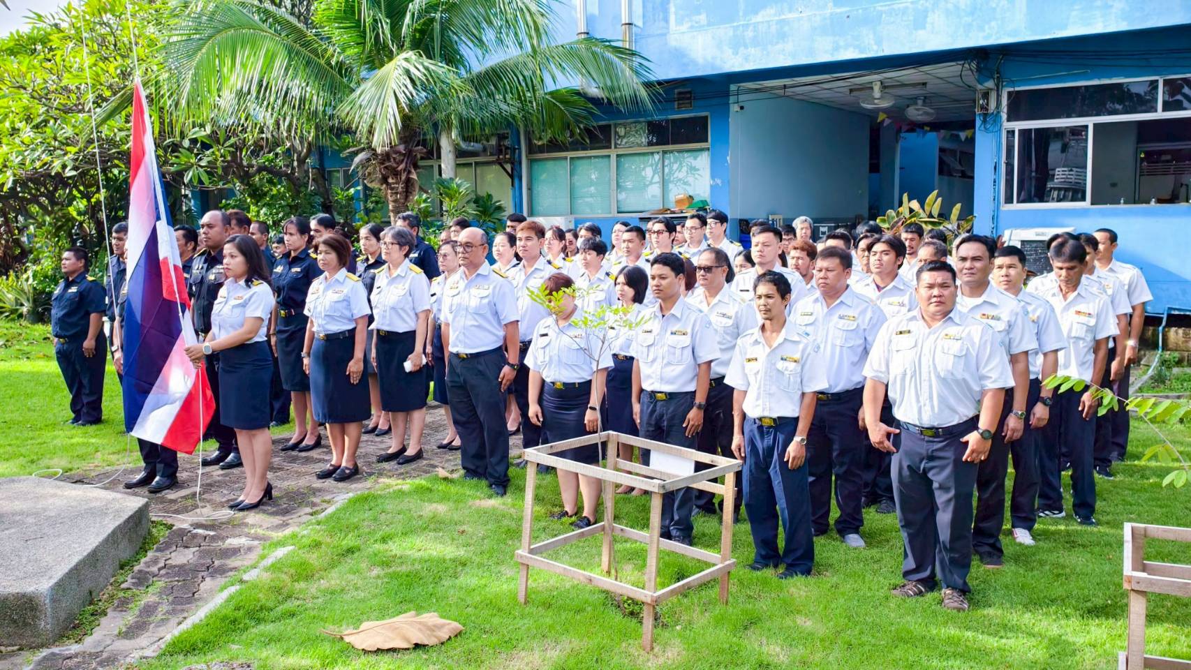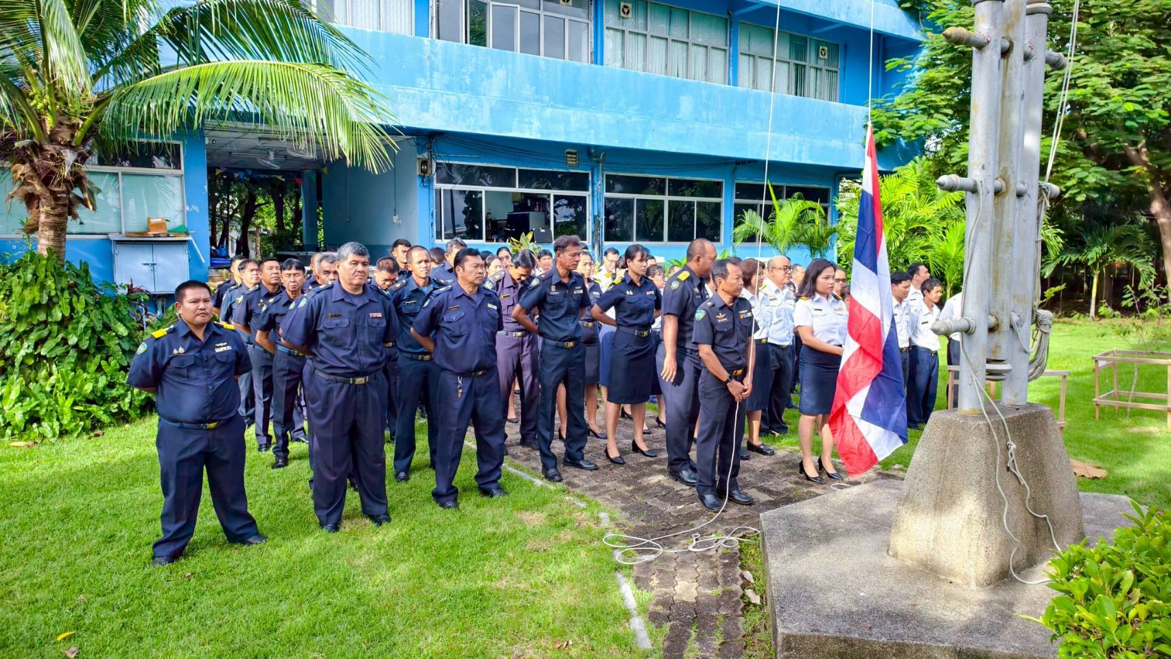 วันที่  29 กันยายน  2568 ศูนย์ป้องกันและปราบปรามประมงทะเลสมุทรปราการ โดยนายศราวุธ วันระยานนท์ ผู้อำนวยการศูนย์ป้องกันและปราบปรามประมงทะเลสมุทรปราการ ร่วมกับ นางสาวอัญญานี แย้มรุ่งเรือง ผู้อำนวยการศูนย์วิจัยและพัฒนาประมงทะเลสมุทรปราการ พร้อมเจ้าหน้าที่ศูนย์ฯ เข้าแถวเคารพธงชาติเนื่องในกิจกรรม 108 ปี วันพระราชทานธงชาติไทย 28 กันยายน 2568  แสดงถึง"สัญลักษณ์ของความเป็นไทย" และรับทราบแนวทางการปฏิบัติงานประจำสัปดาห์ บริเวณหน้าเสาธงชาติศูนย์ฯ ศูนย์ป้องกันและปราบปรามประมงทะเลสมุทรปราการ