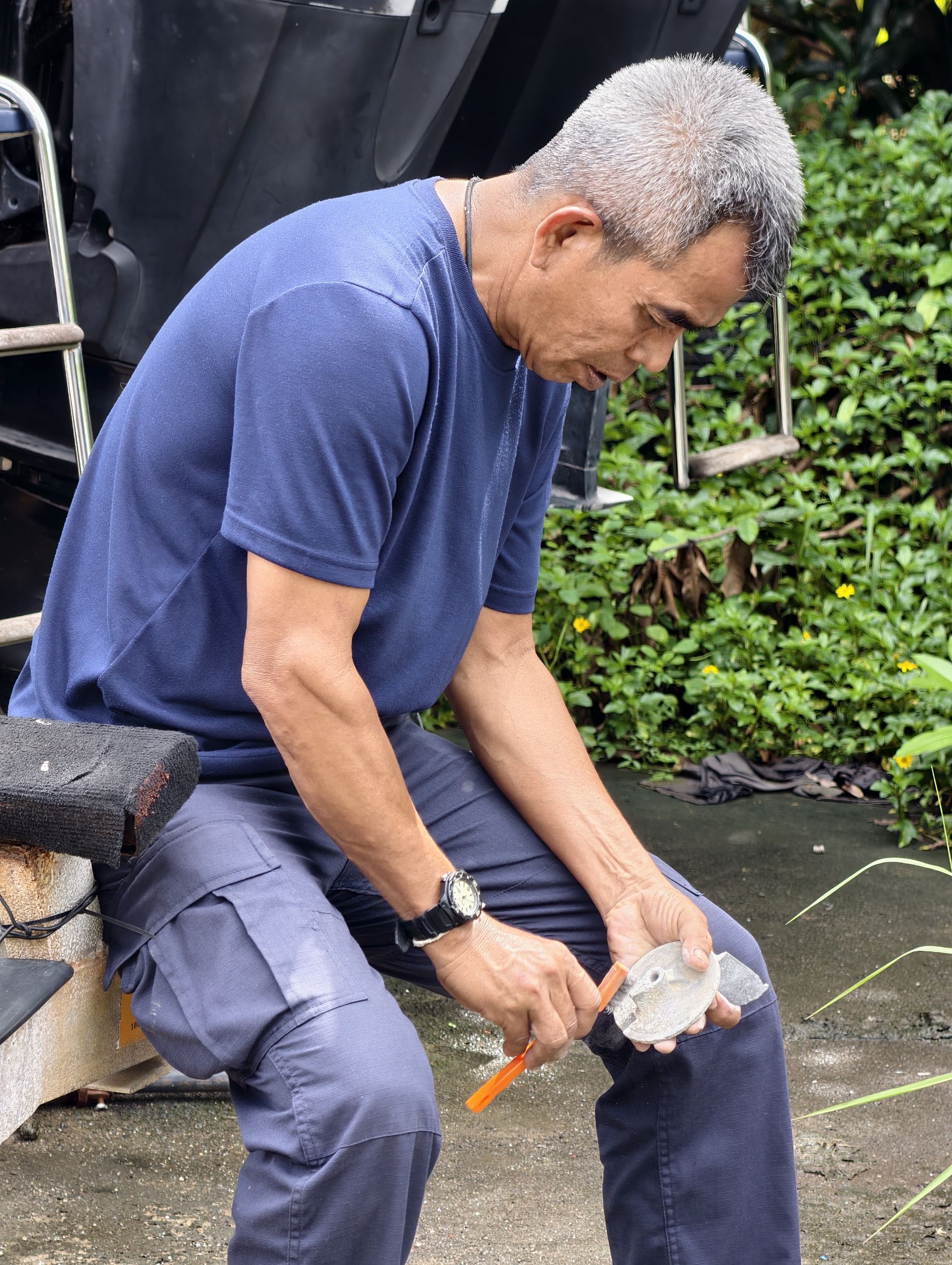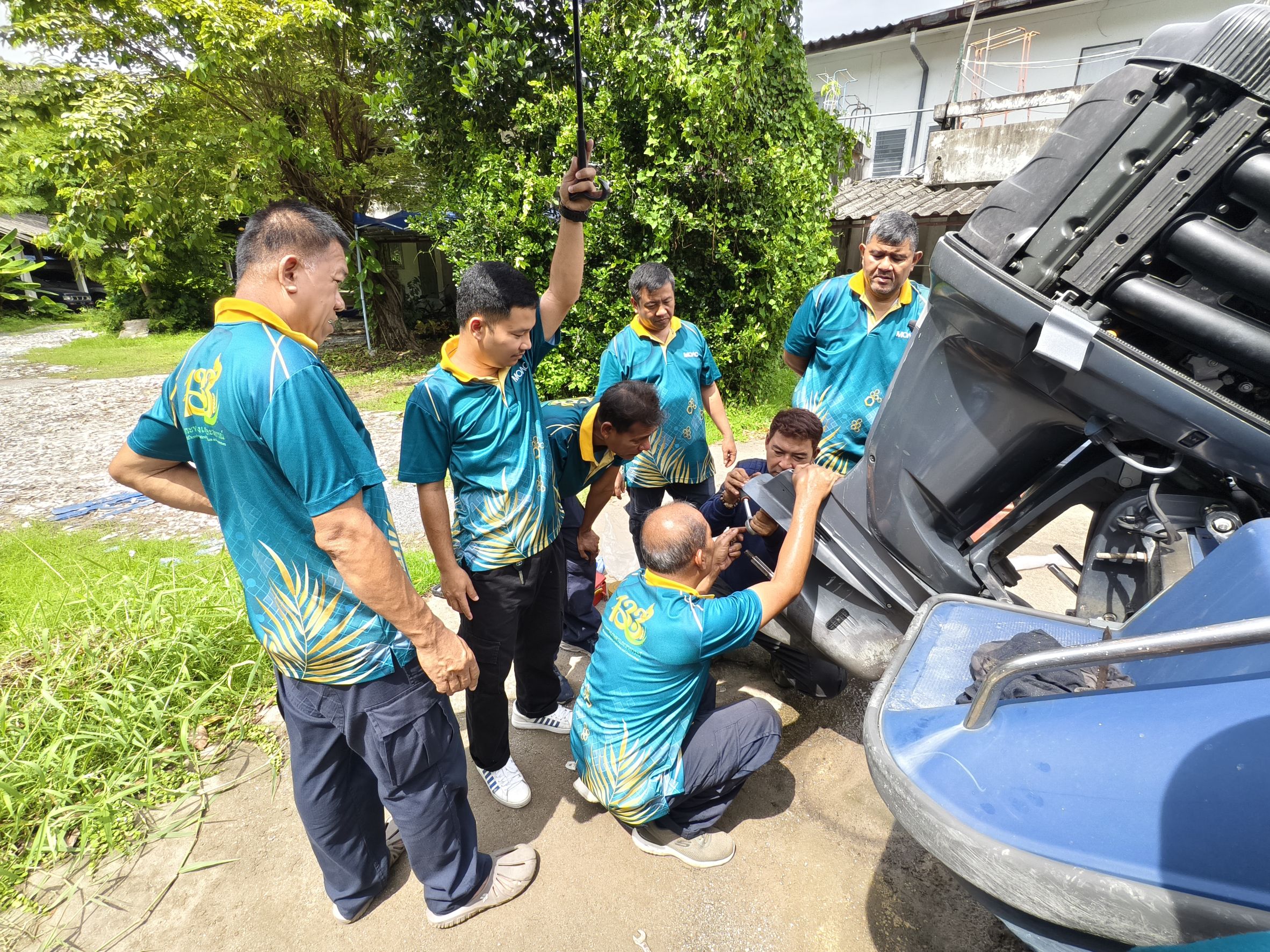 วันที่ 8 ตุลาคม 2568 เจ้าหน้าที่ศูนย์ป้องกันและปราบปรามประมงทะเลสมุทรปราการ ได้ทำการประกอบชุดเกียร์เรือตรวจประมงทะเลร่วมชุมชนและเรือตรวจประมง111 และทดสอบเครื่องยนต์ เพื่อให้มีความพร้อมในการออกปฏิบัติงาน ต่อไป